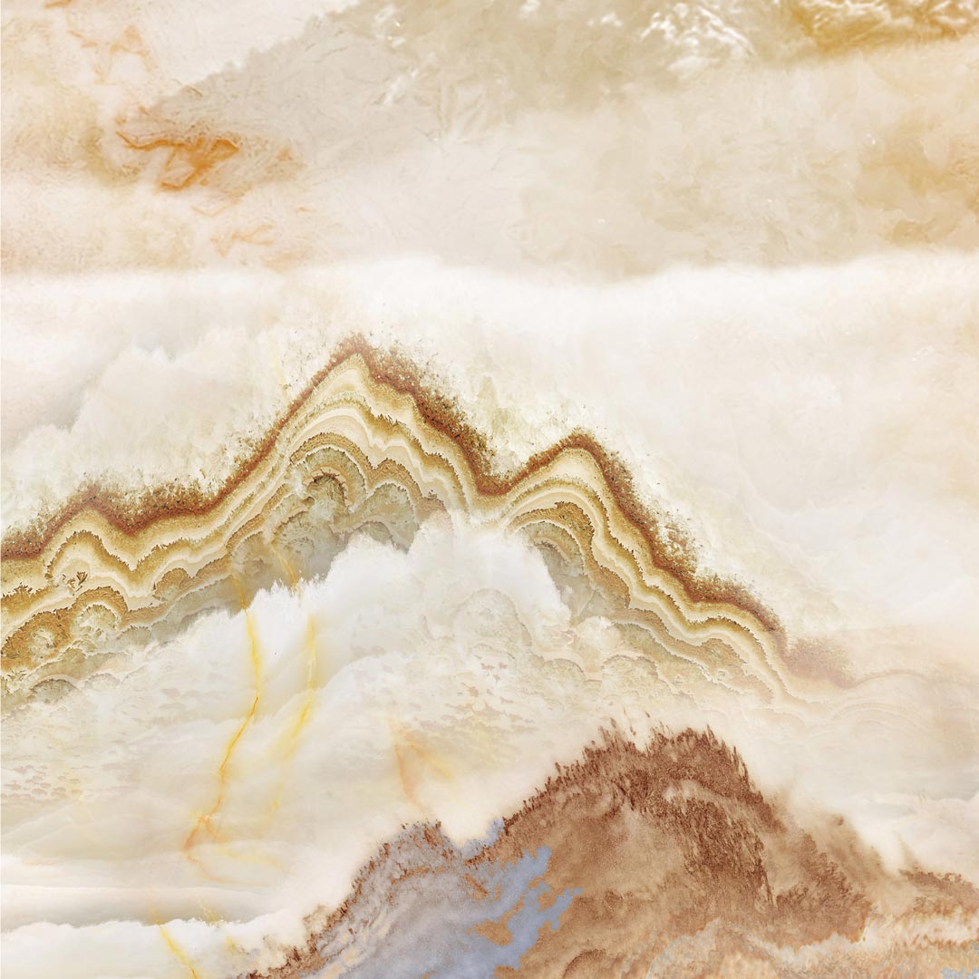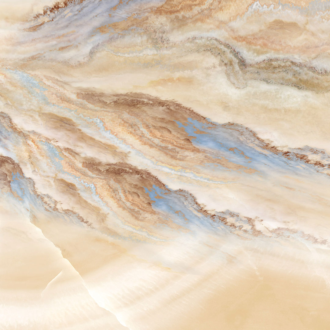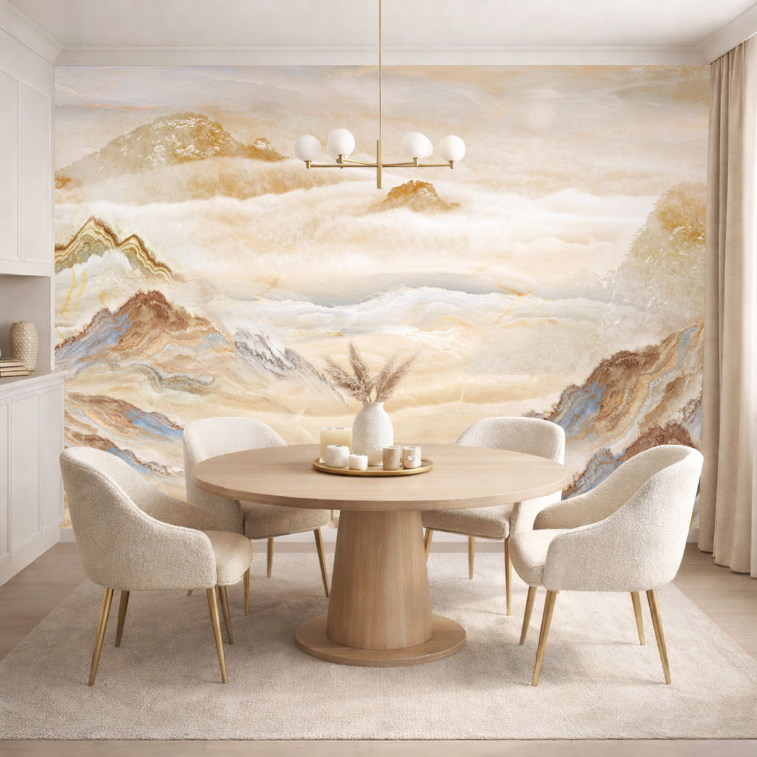 Béžová a modrá tapeta, vrcholky hor v oblacích, malířský a boho styl