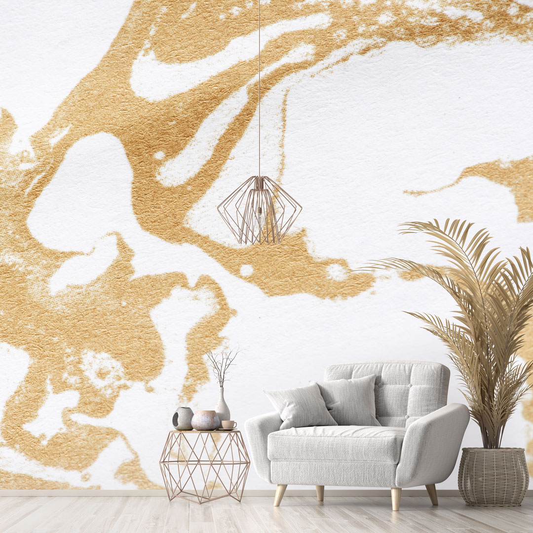 Bílá a zlatá tapeta, dekorativní vzor, glamour styl, odstíny béžové - vyprahlý zlatý písek