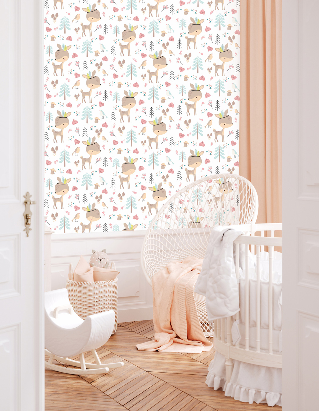 Báječná tapeta na zeď se srnečkem Akselem, který děti provede všemi indiánskými skrýšemi v Začarovaném lese!