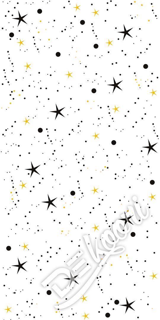 Bílá tapeta na zeď s HVĚZDIČKAMI a PUNTĺKY černými, hořčicovými