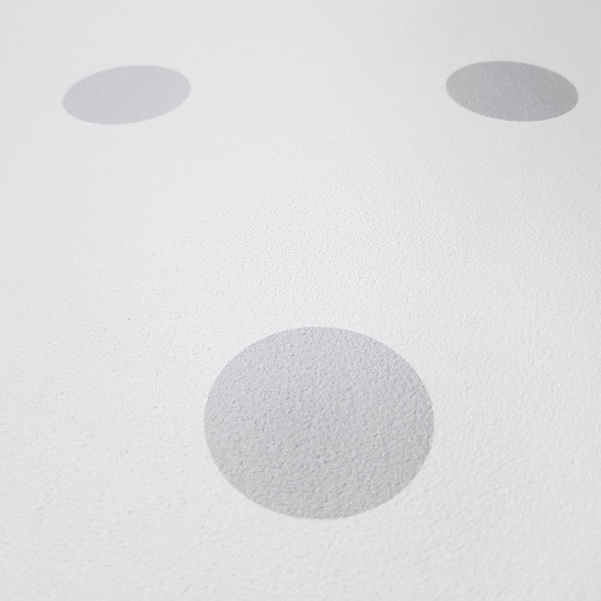 Bílá tapeta s šedými puntíky, tečky polka dot 5 cm