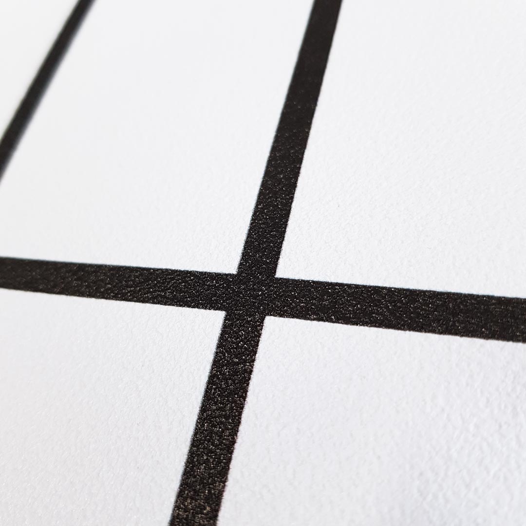 Bílá geometrická tapeta s černým mřížkovaným, kostkovaným vzorem. Minimalistický geometrický vzor: tenké černé linie na bílém pozadí. Perfektní na stěnu v moderních interiérech.
