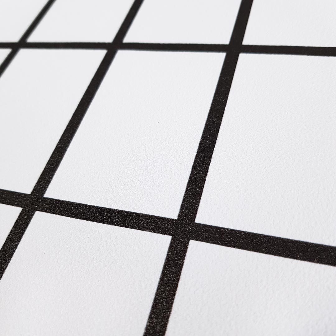 Bílo-černá mřížkovaná, kostkovaná tapeta na zeď, obdélníky 4,5 x 7 cm