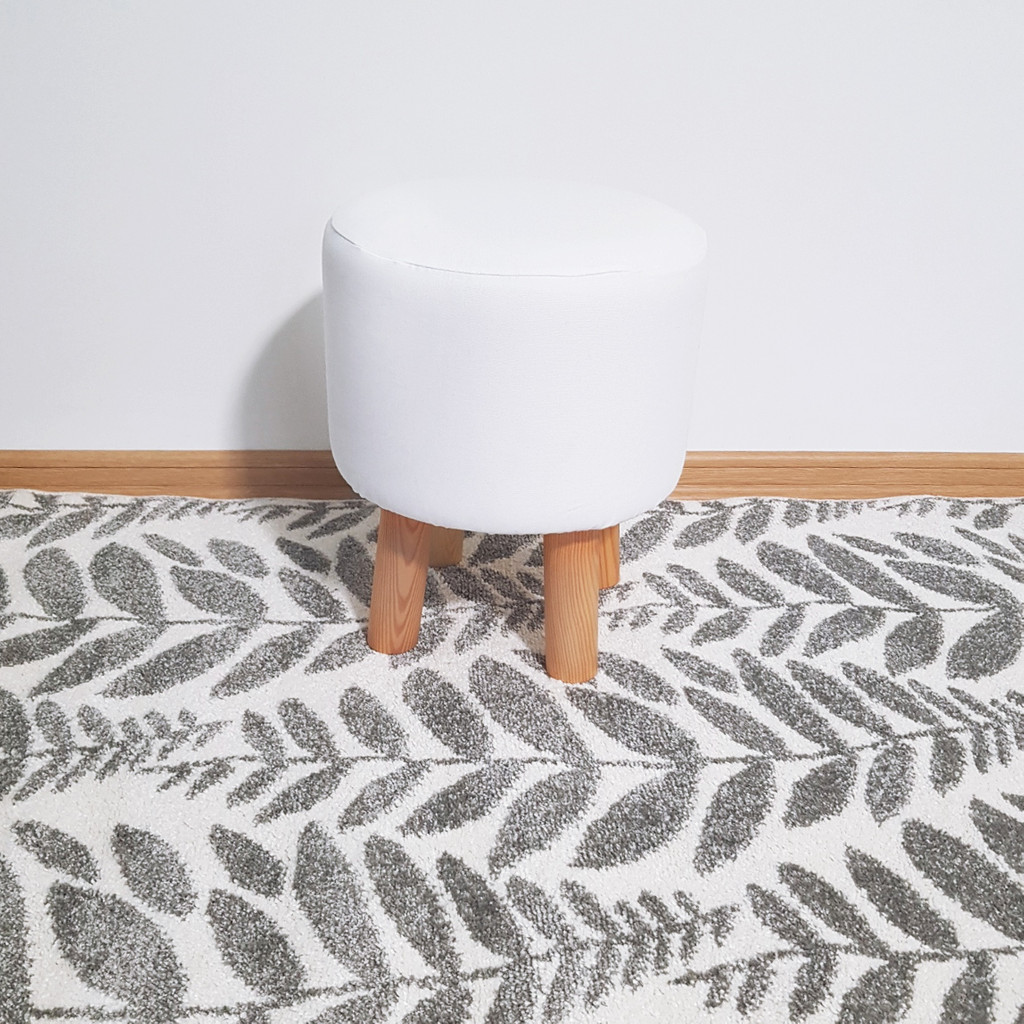 Krásný bílý pouf, skandinávská sedací stolička. Má dřevěné nohy, pohodlné kulaté sedadlo a sundavací, hladký jednobarevný potah v bílé barvě. Hodí se do obývacího pokoje, ložnice i jiných místností. Bude vhodný do interiérů zařízených ve skandinávském stylu. Můžete si vybrat stoličku nízkou nebo vysokou.