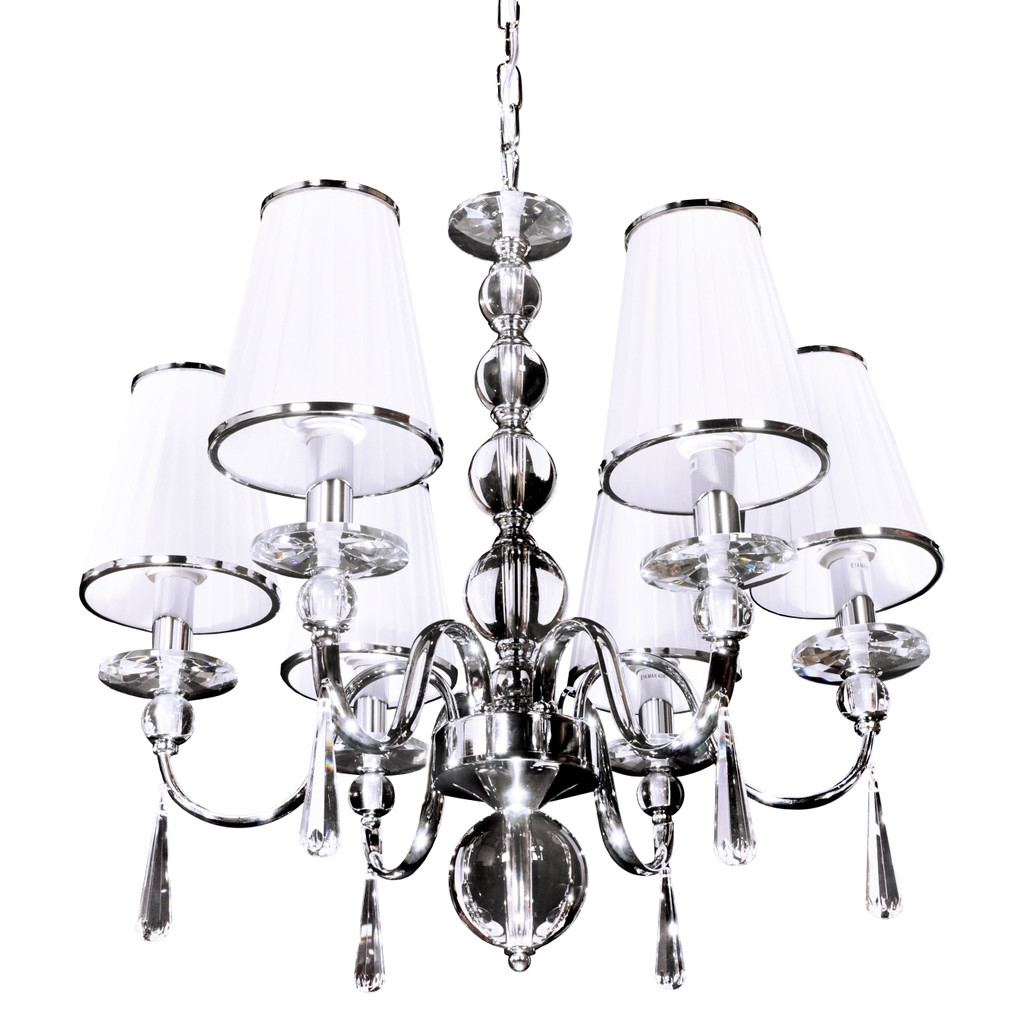 Chromovaný bílý křišťálový lustr FEDERRICA W6 na řetízku