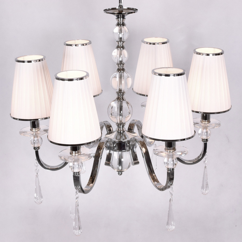 Stylový, šestiramenný, bílý lustr FEDERRICA s ověsy z křišťálového skla v elegantní, klasické podobě poskytuje moderní osvětlení obývacího pokoje. Svítidlo je vyrobeno z chromovaného kovu, zdobené krystaly.