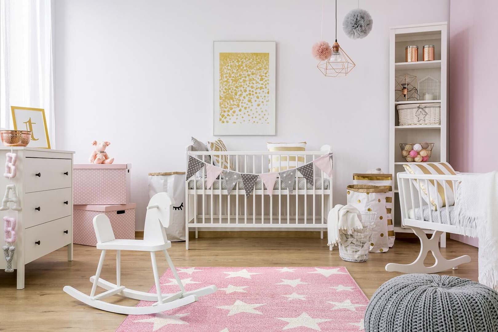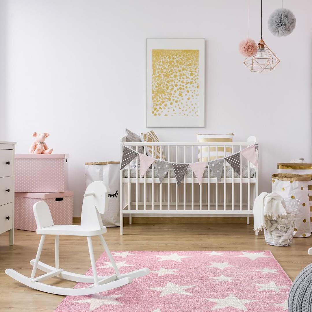Dětský růžový koberec s krémovými hvězdami Pink Night pro děvčata