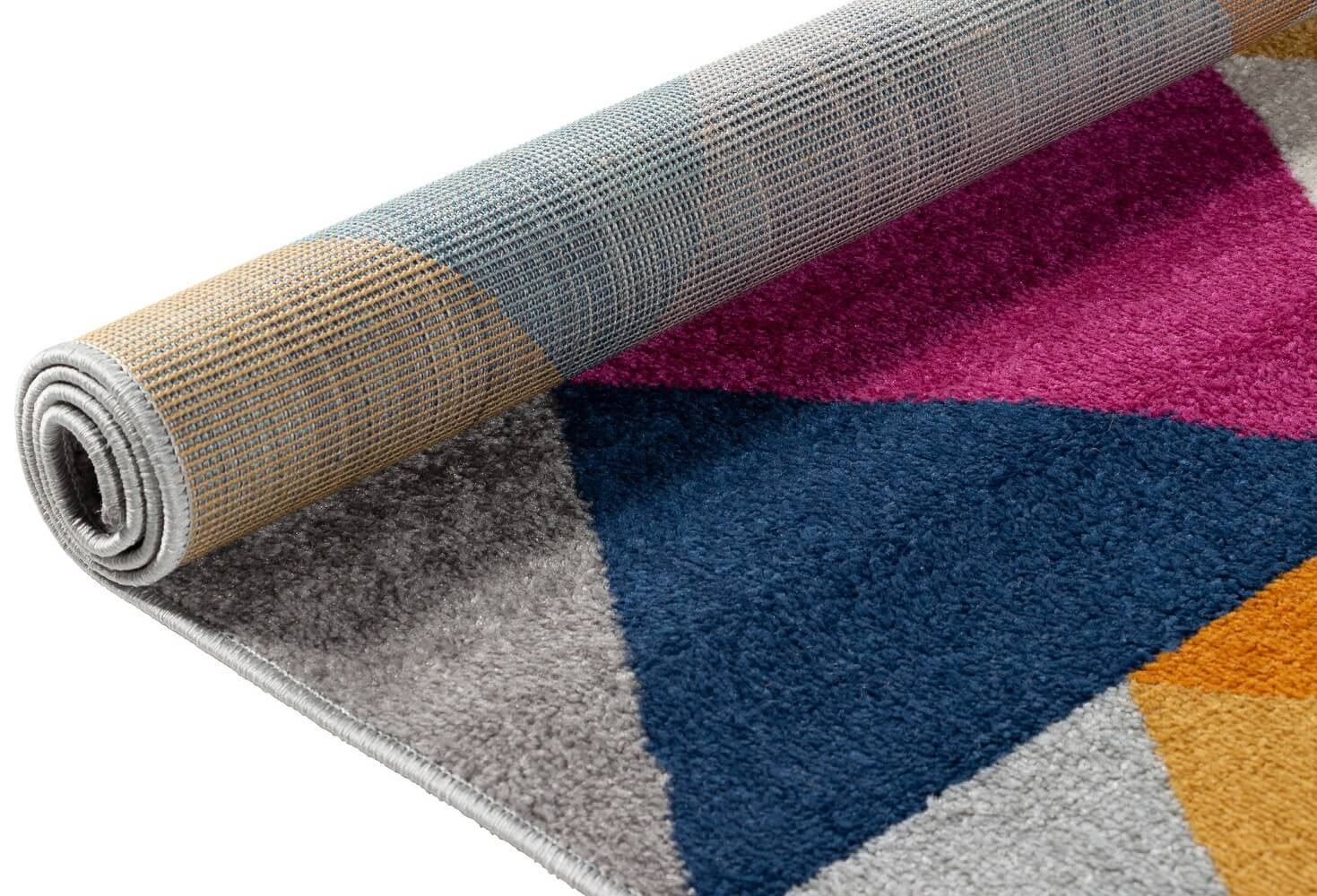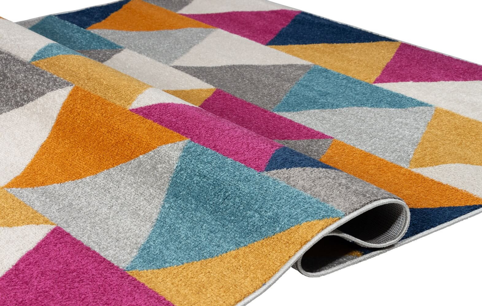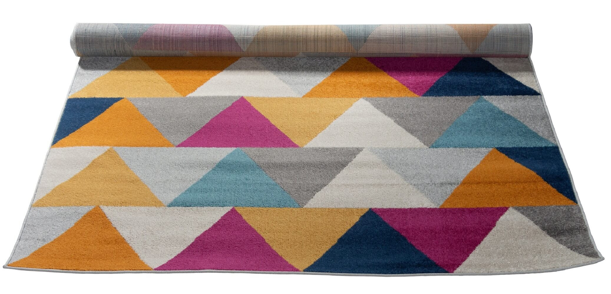 Barevný, energický vzor je dokonalý nápad na koberec pro mladé. Tento model s moderní geometrickou kompozicí složenou z trojúhelníků je toho nejlepším příkladem.
