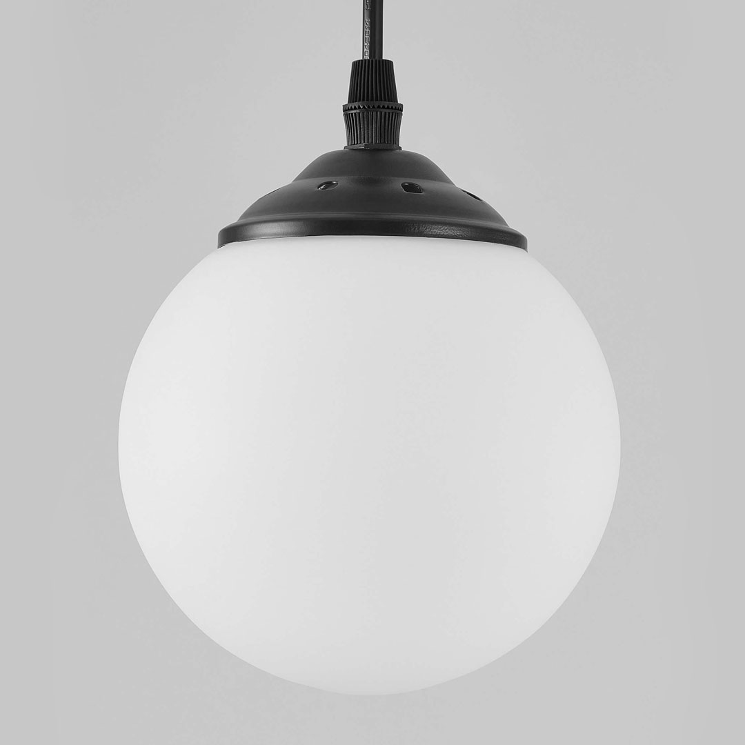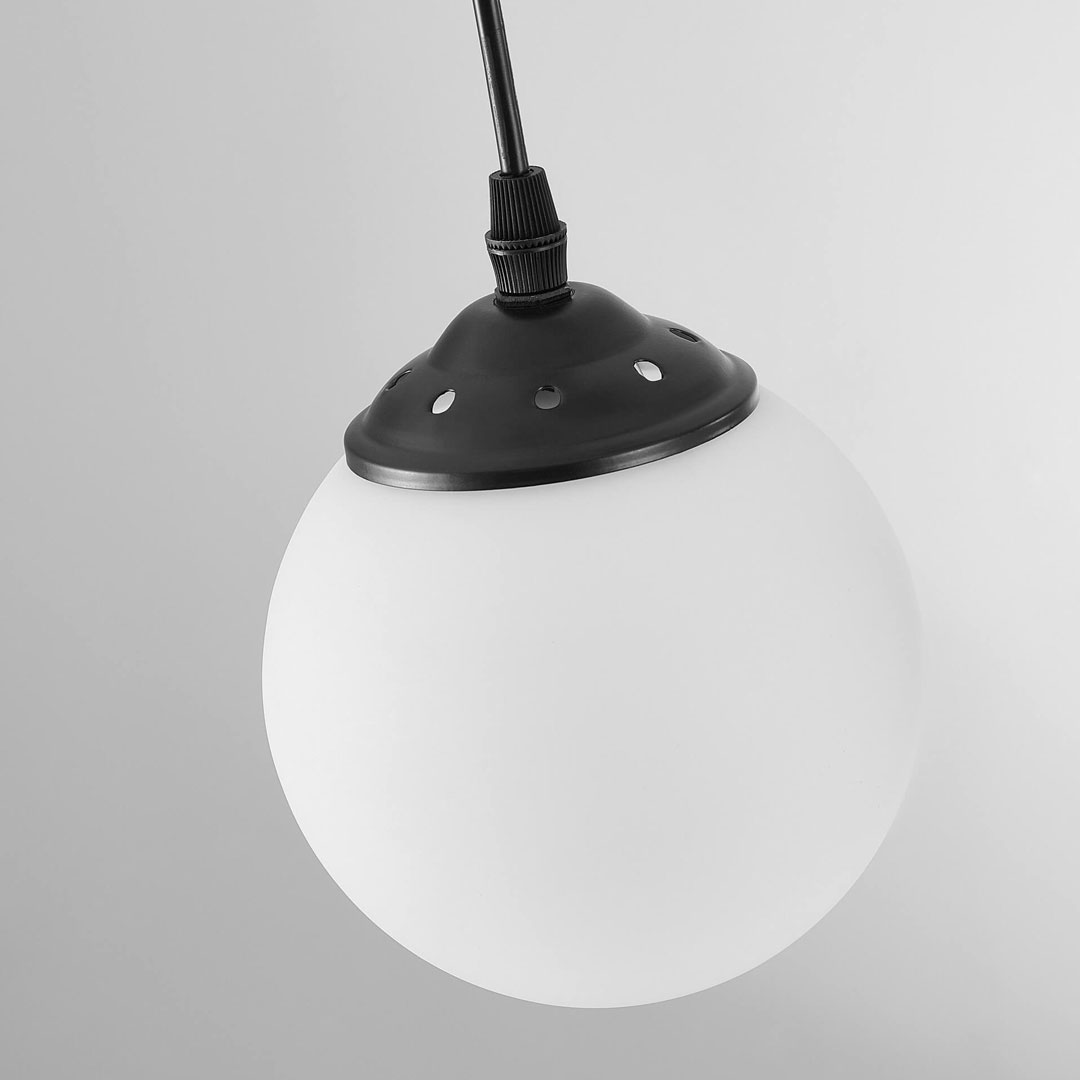 Jednoduchá černá závěsná lampa koule, bílá skleněná kulička, kulovité stínidlo - FINO W1