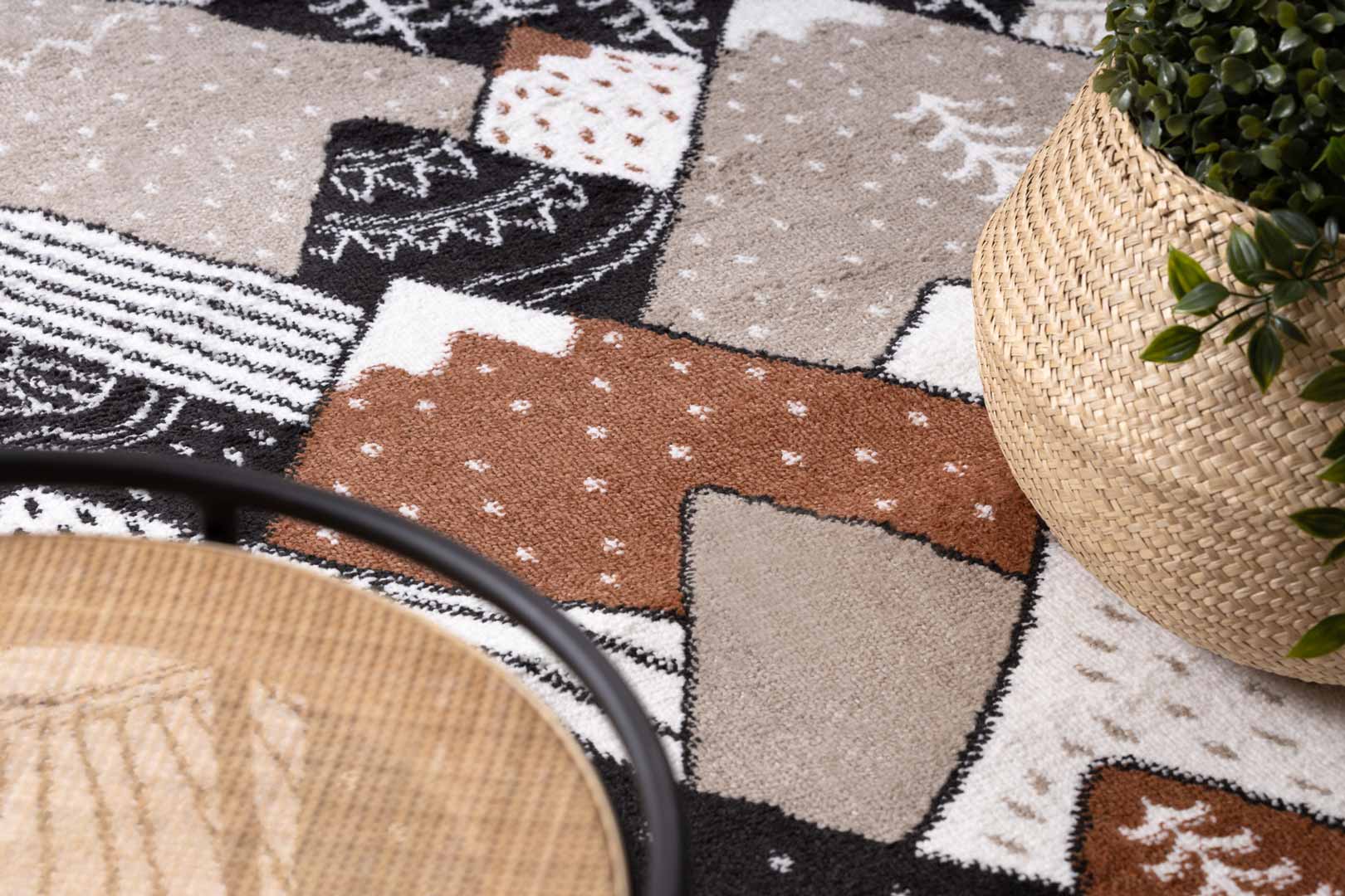 Barevný koberec hory, vrcholy, bílý-černý-hnědý-béžový, do dětského pokoje - FUN TOPS