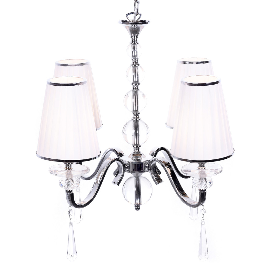 Lustr s krystaly, čtyři bílá stínidla FEDERRICA W4 stříbrná chromovaná ramena