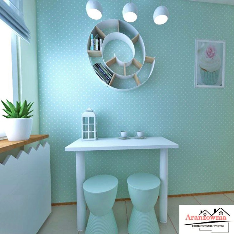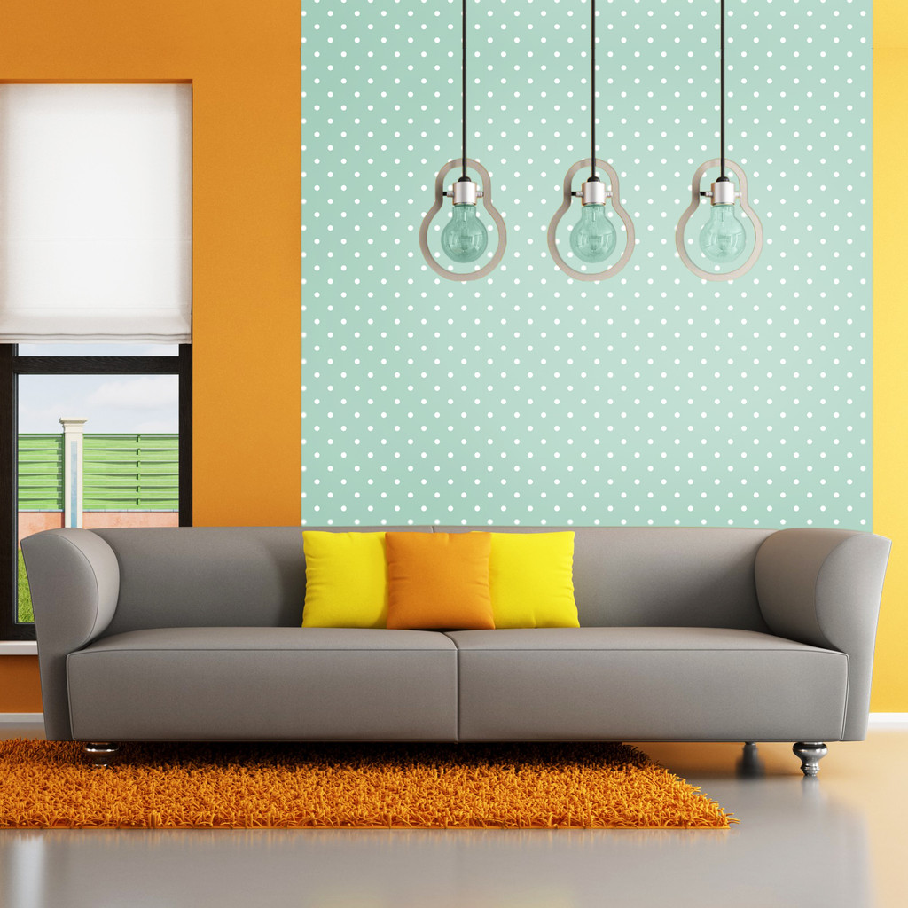 Klasická mátově zelená tapeta s drobnými bílými puntíky, tečkami. Tapeta v mátové barvě představující styl polka dot retro vintage.