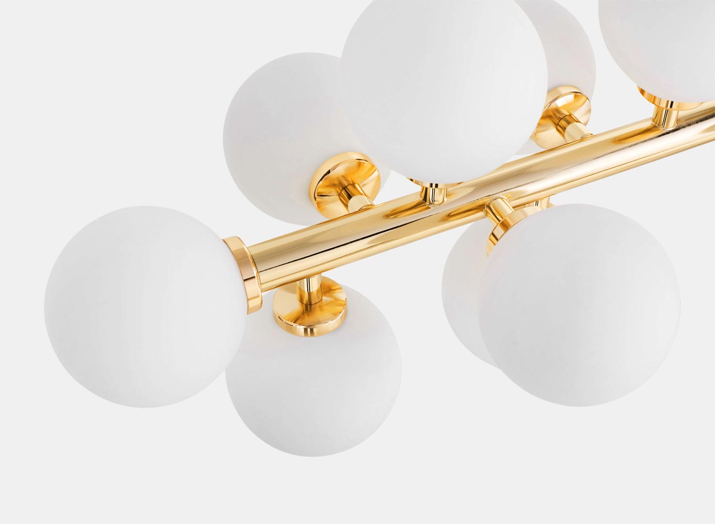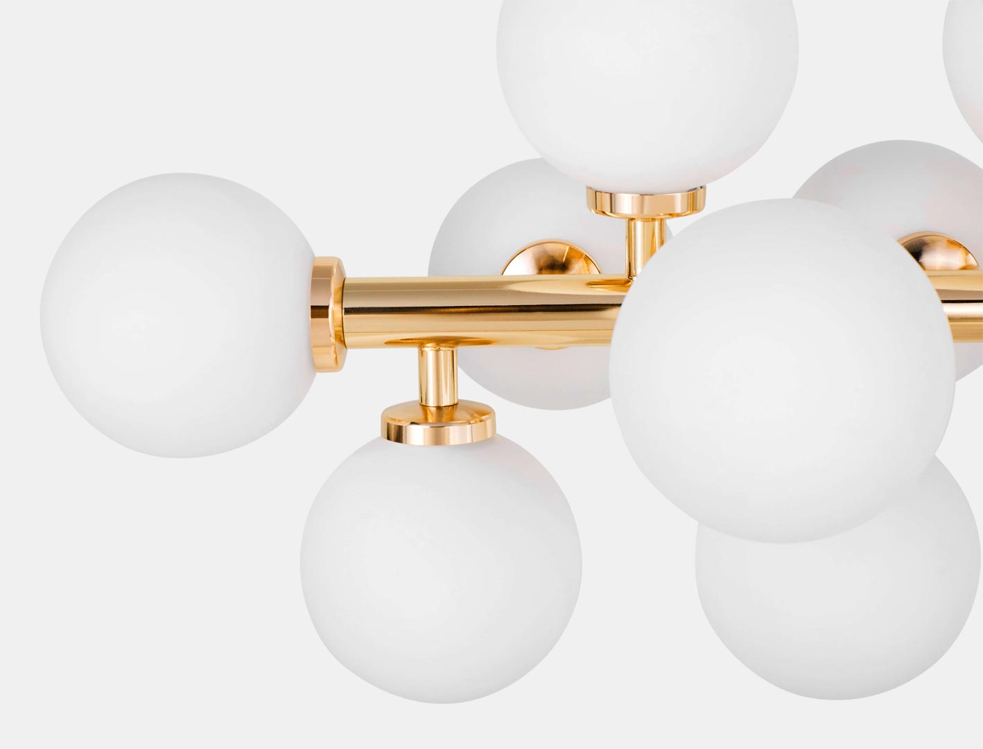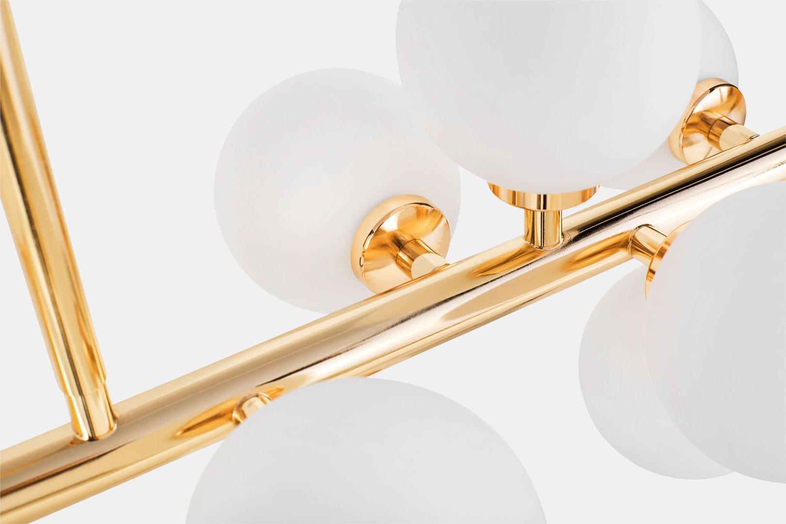 Elegantní, mosazné, závěsné svítidlo PETRICA bílé stínidla skleněné koule