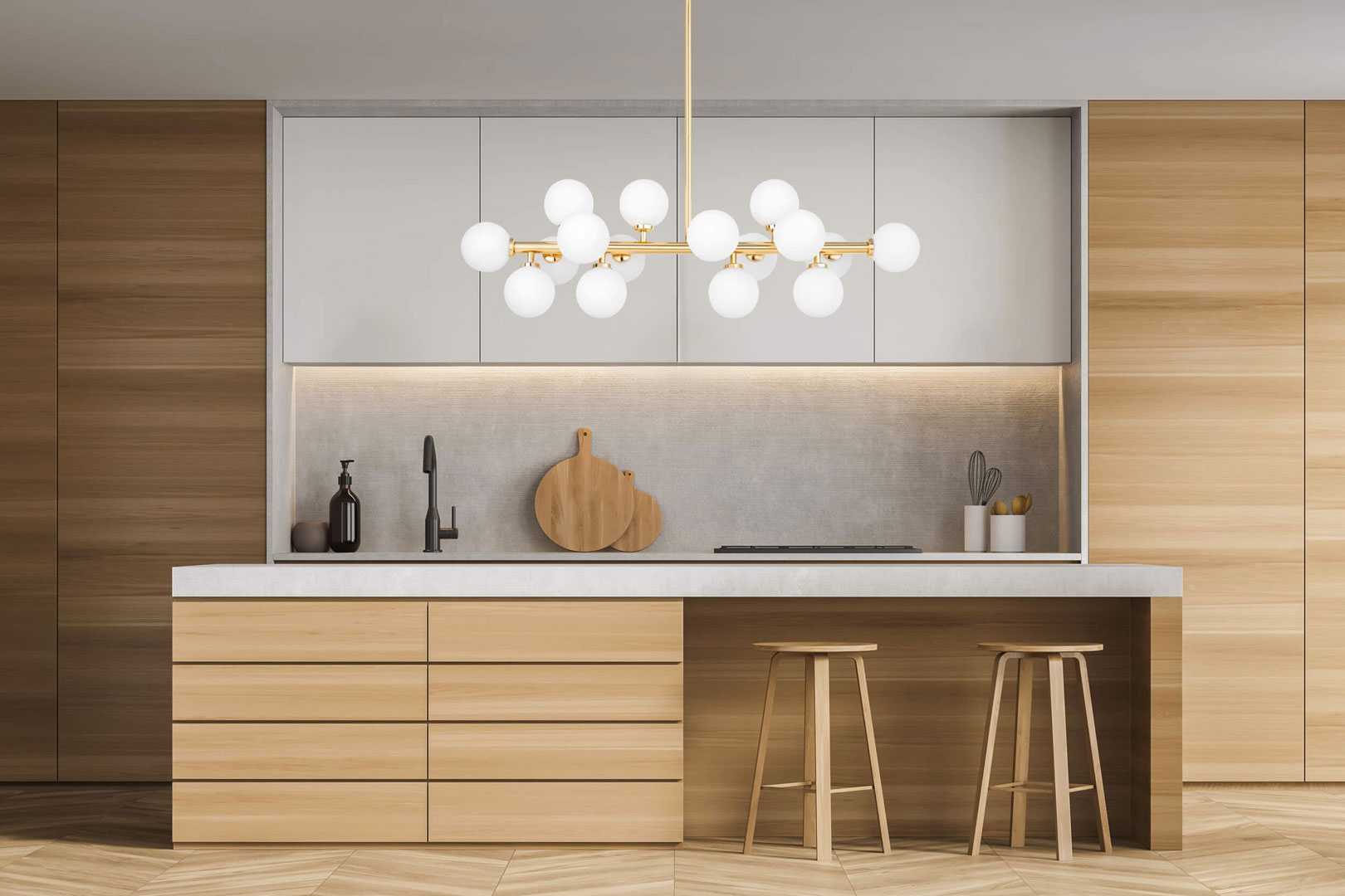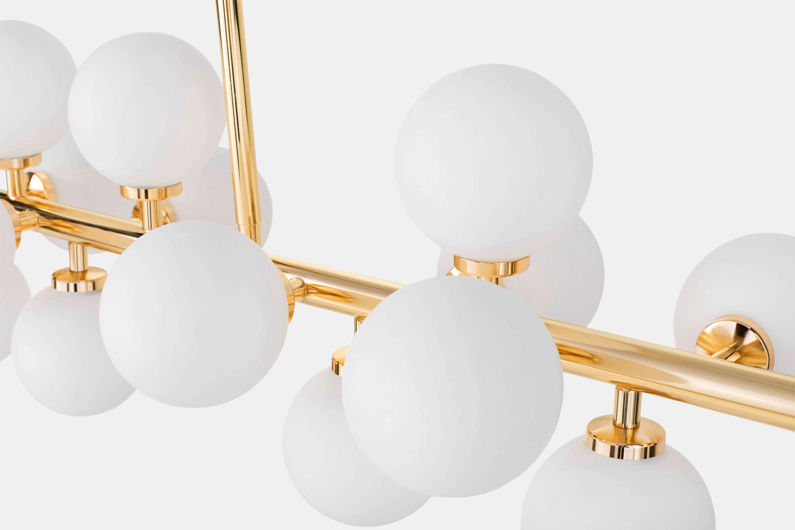 Zlatá závěsná lampa, bílé skleněné koule, moderní lustr, klasická zlatá - PETRICA