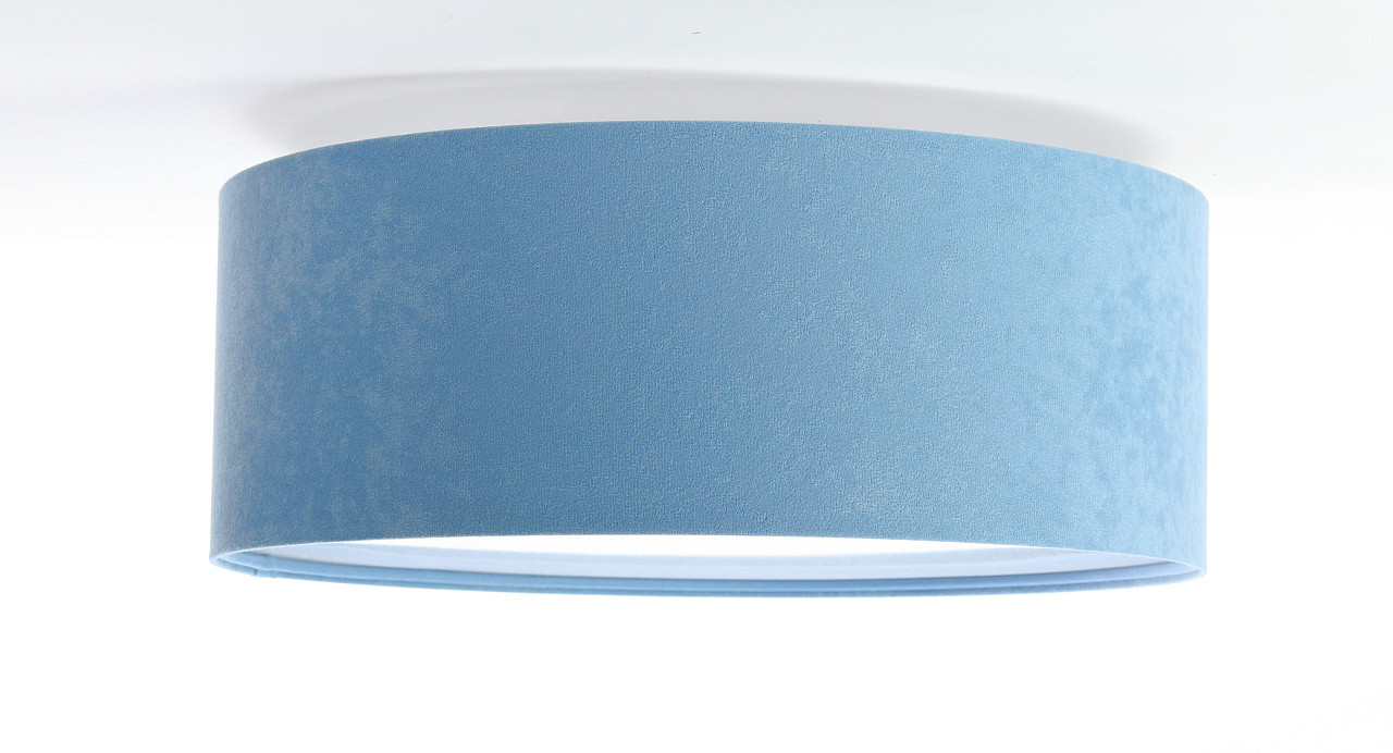 Modré stropní svítidlo, válcová lampa s kulatým velurovým stínidlem