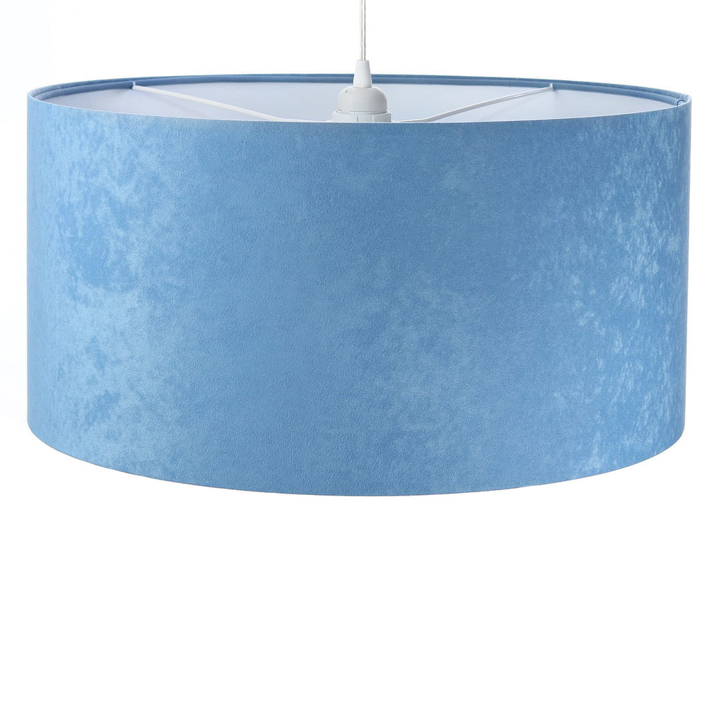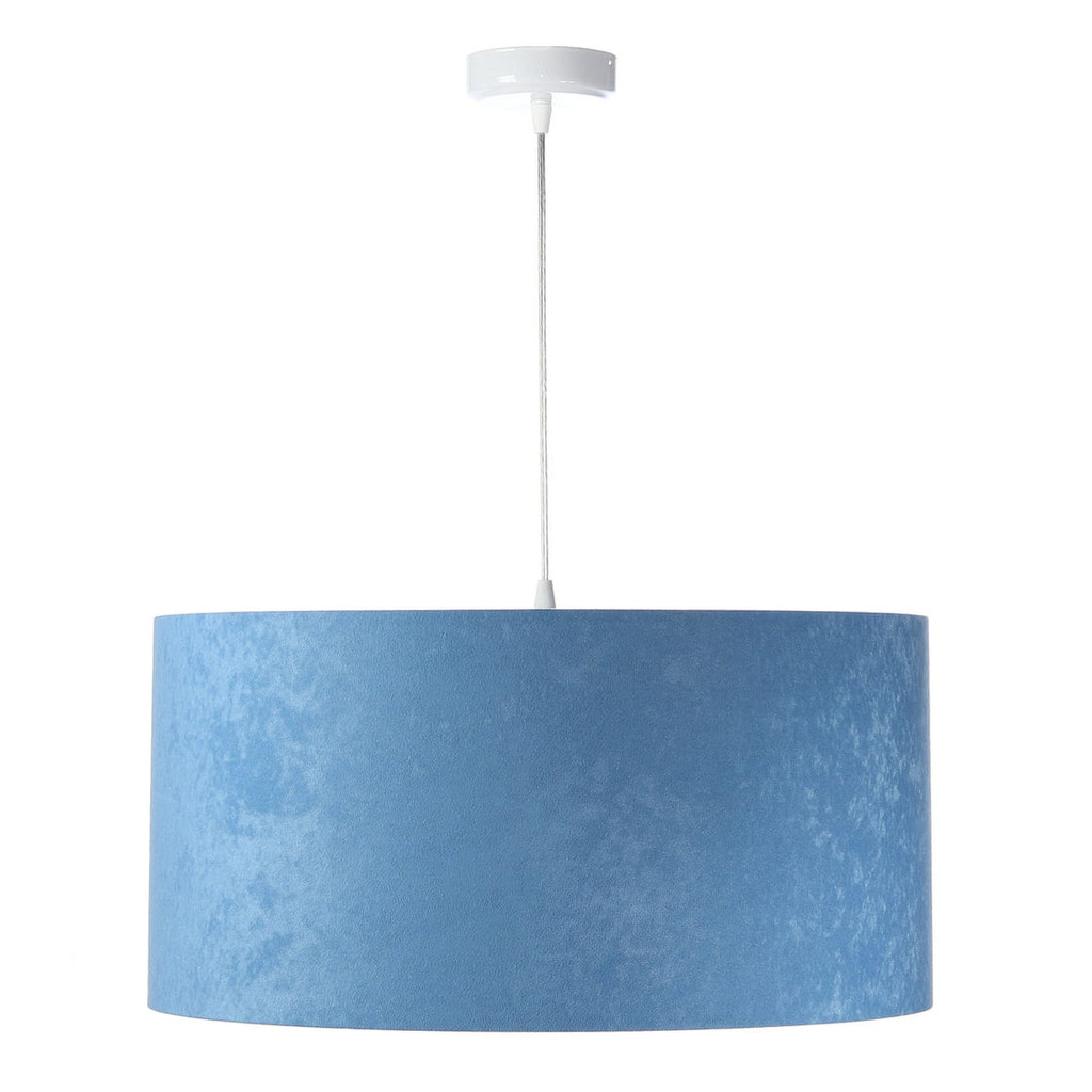 Modro-bílé závěsné svítidlo s velurovým stínidlem ve tvaru válce ANGARIKA