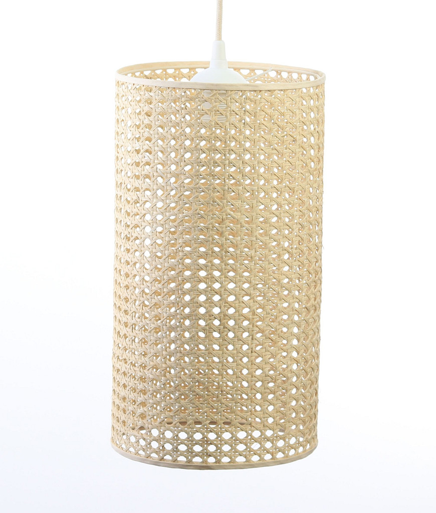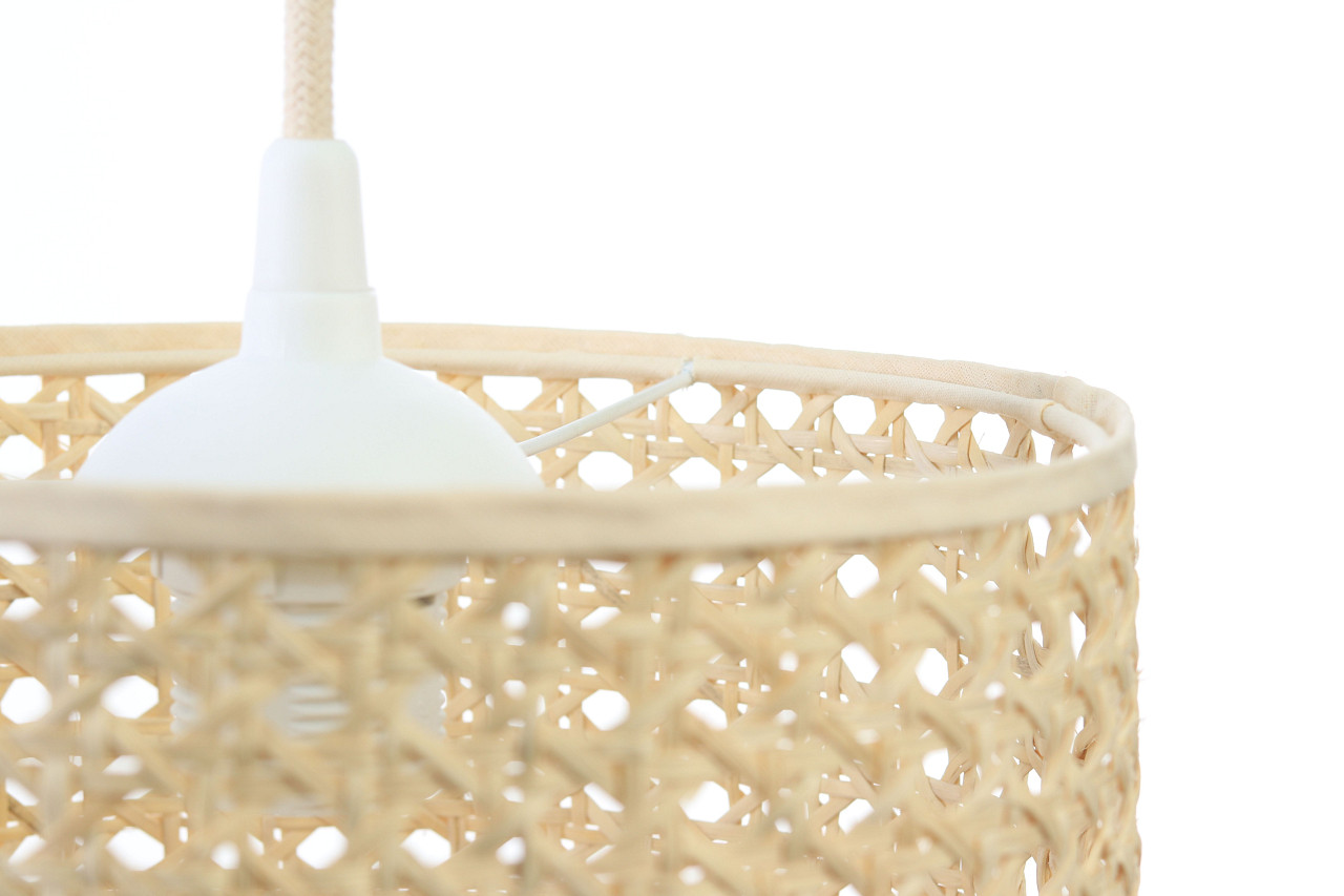 Přírodní závěsná lampa s boho ratanovým stínidlem ve tvaru válce ROTANG
