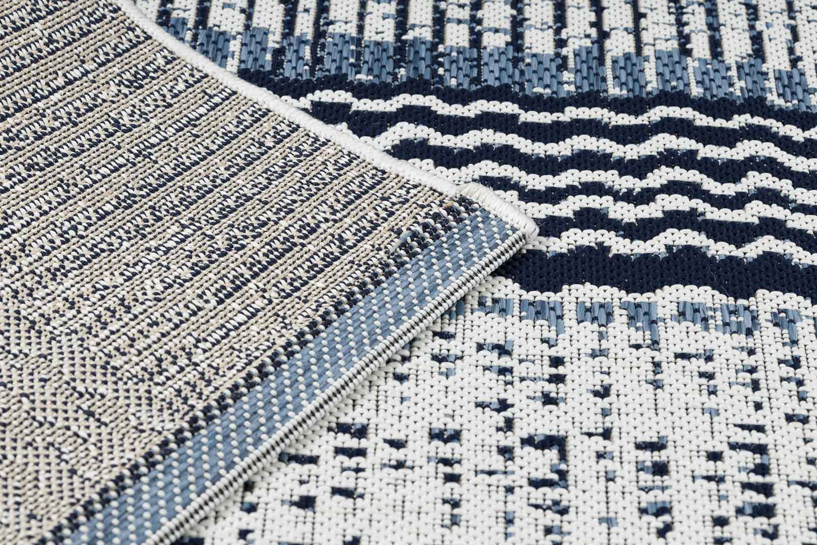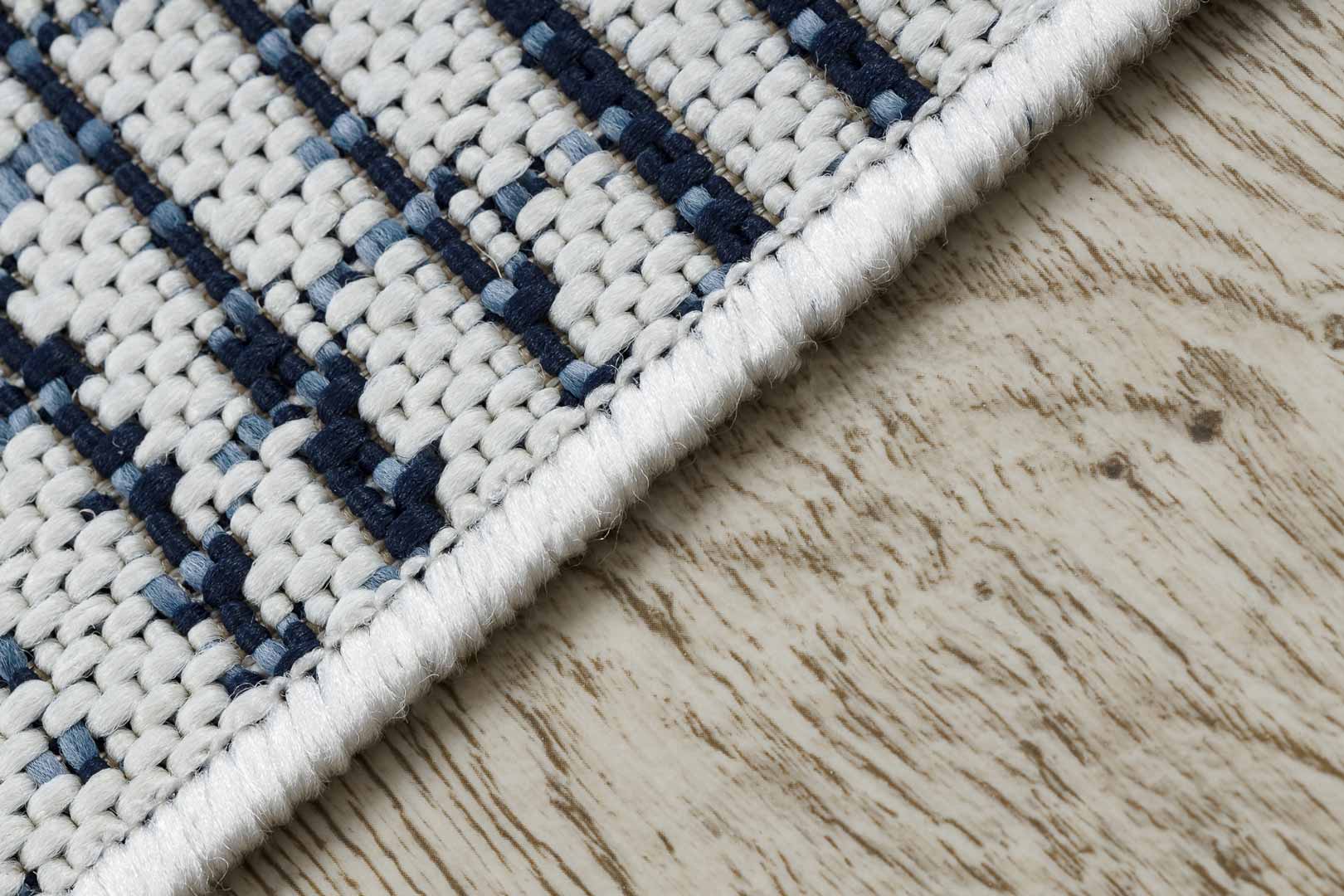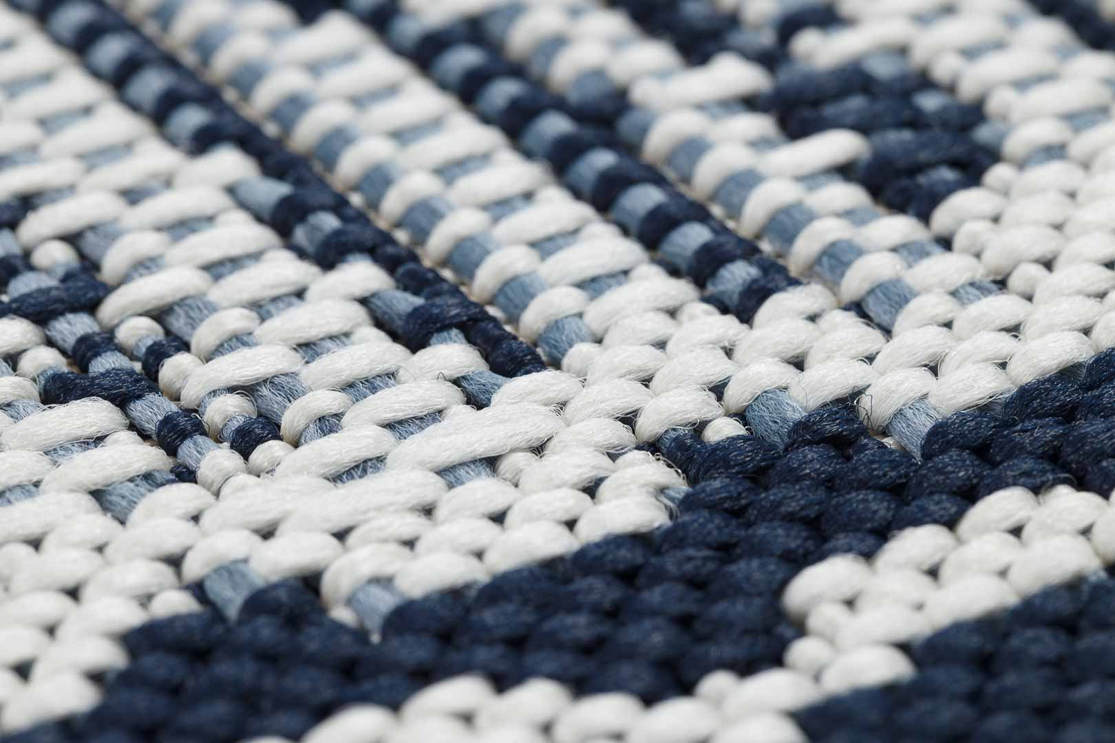 Pruhovaný provázkový koberec, bílý/modrý/tmavě modrý, boho a skandinávský styl, vnitřní i venkovní - BETTY