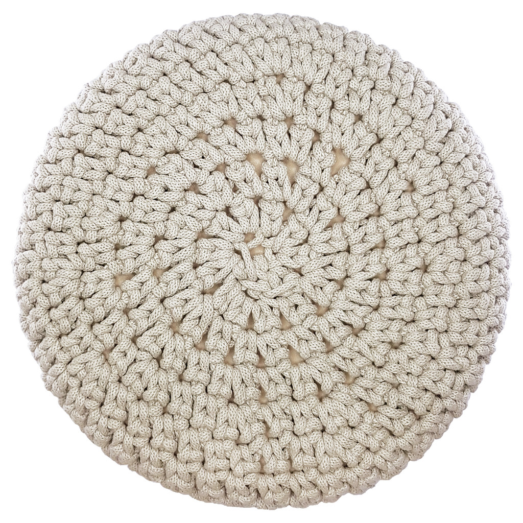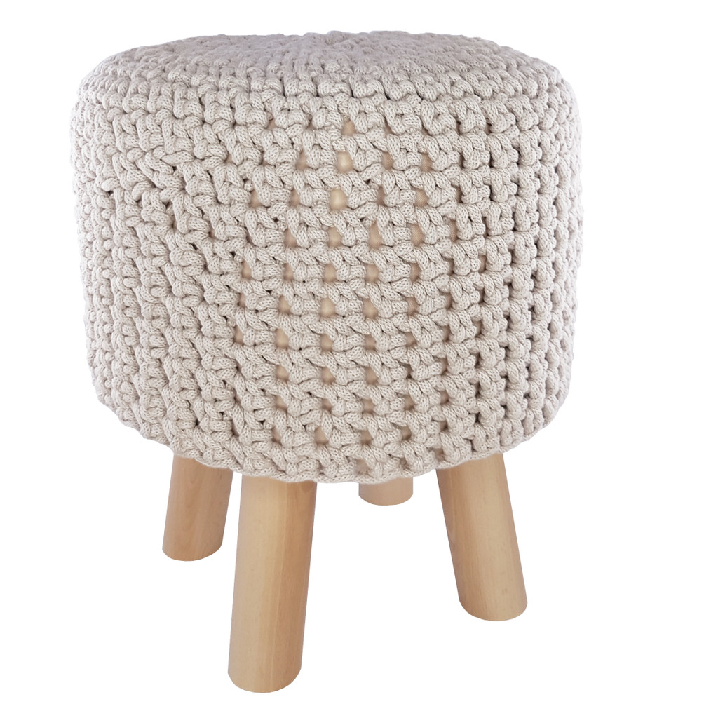 Rustikální dekorativní pouf, stolička se světle béžovým šňůrkovým potahem