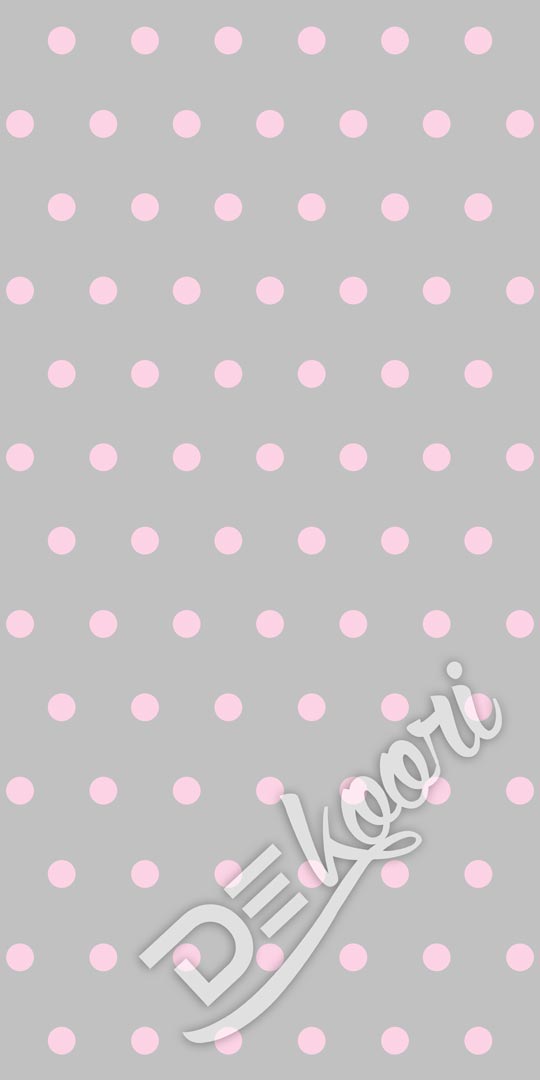 Šedá puntíkovaná tapeta do bytu s růžovými puntíky, tečky 5 cm