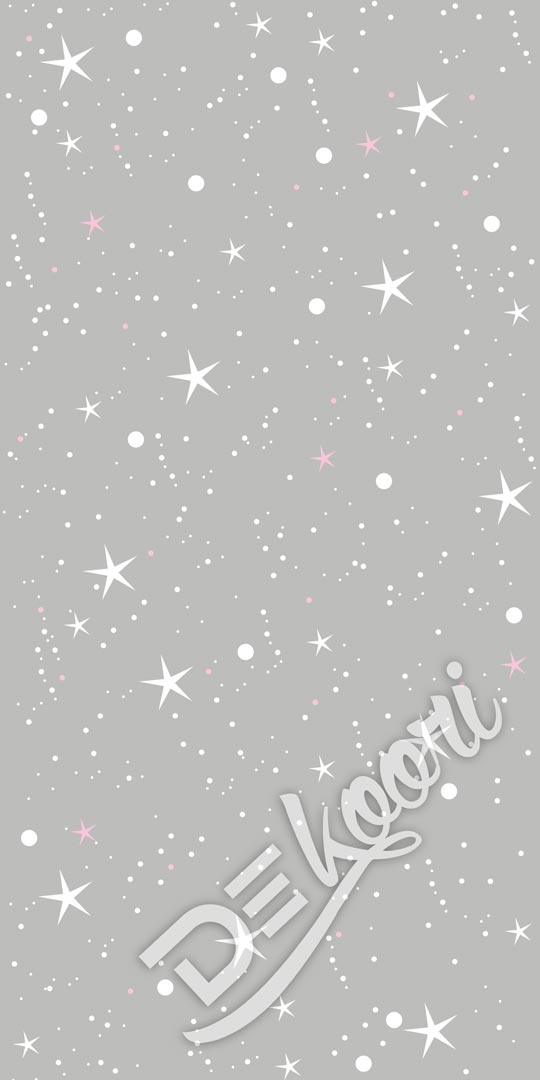 Šedá tapeta na zeď s bílo-růžovými HVĚZDIČKAMI a PUNTĺKY