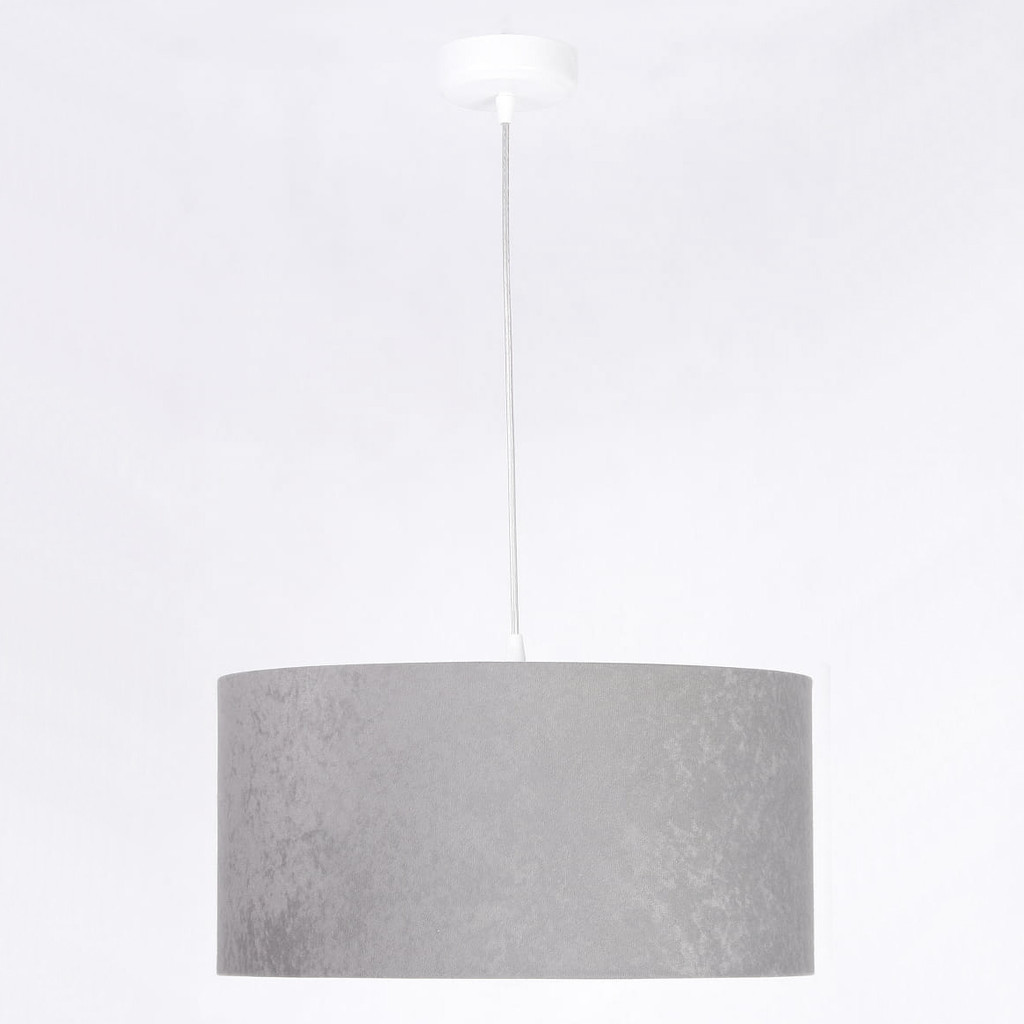 Šedo-bílé závěsné svítidlo ve tvaru válce s velurovým stínidlem KAMELIA