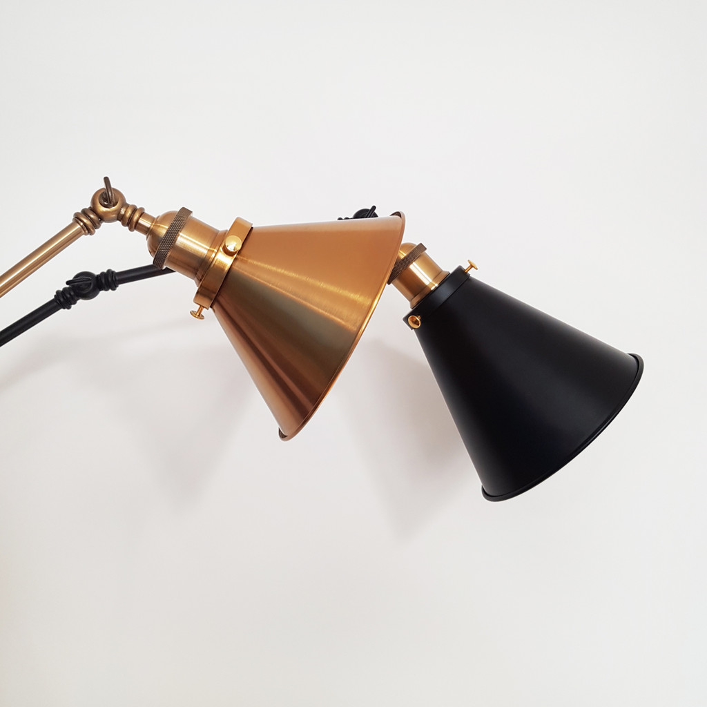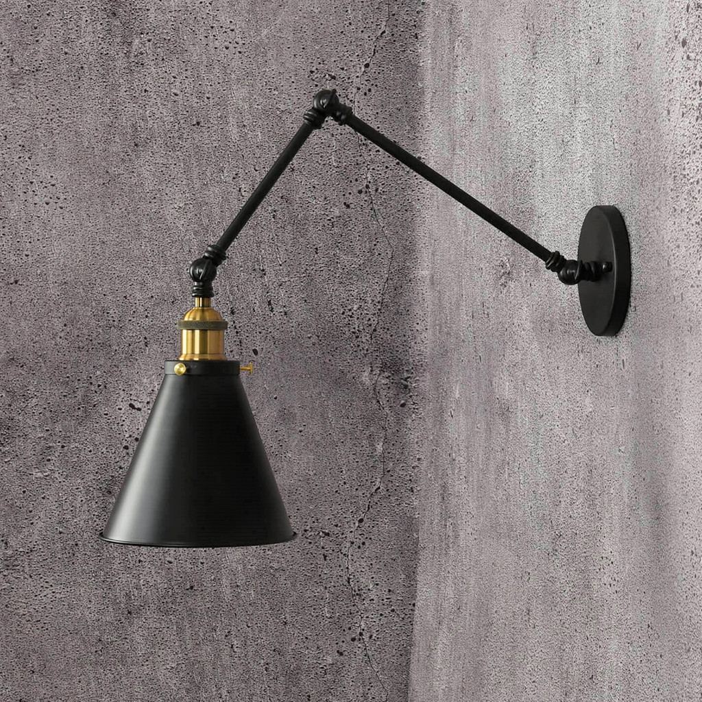 Módní loftová nástěnná lampa RUBI W2 s černým, kónickým stínítkem. Svítidlo vyrobeno z kovu v průmyslovém stylu, díky čemuž je ideální hlavně pro retro a vintage interiéry. Je to lampa na prodlužovacím rameni, díky němuž můžete nastavit světlo, např. pro čtení v ložnici nebo obývacím pokoji.