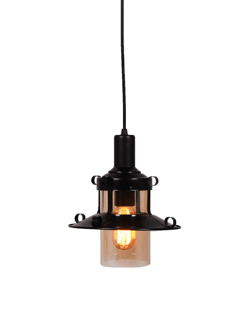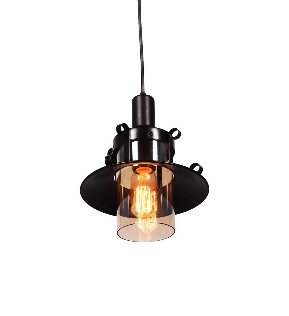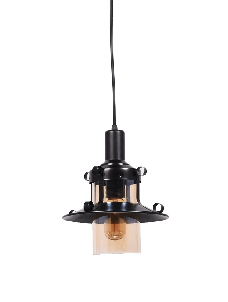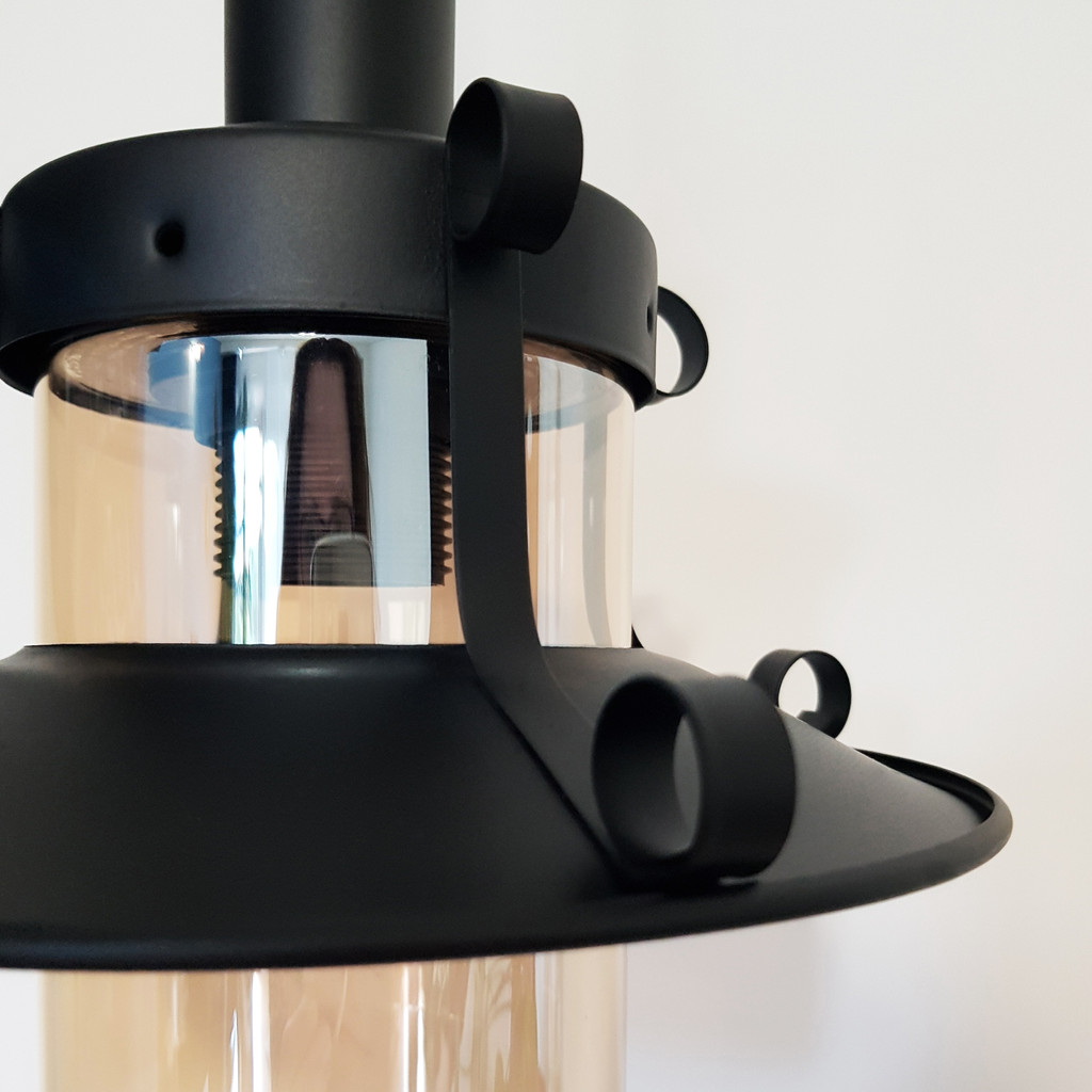 Klasická nastavitelná kloubová lampa CAPRI s černými součástmi se skleněným jantarovým stínidlem. Loftový styl lampy bude vhodný do kuchyně nebo do jídelny.
