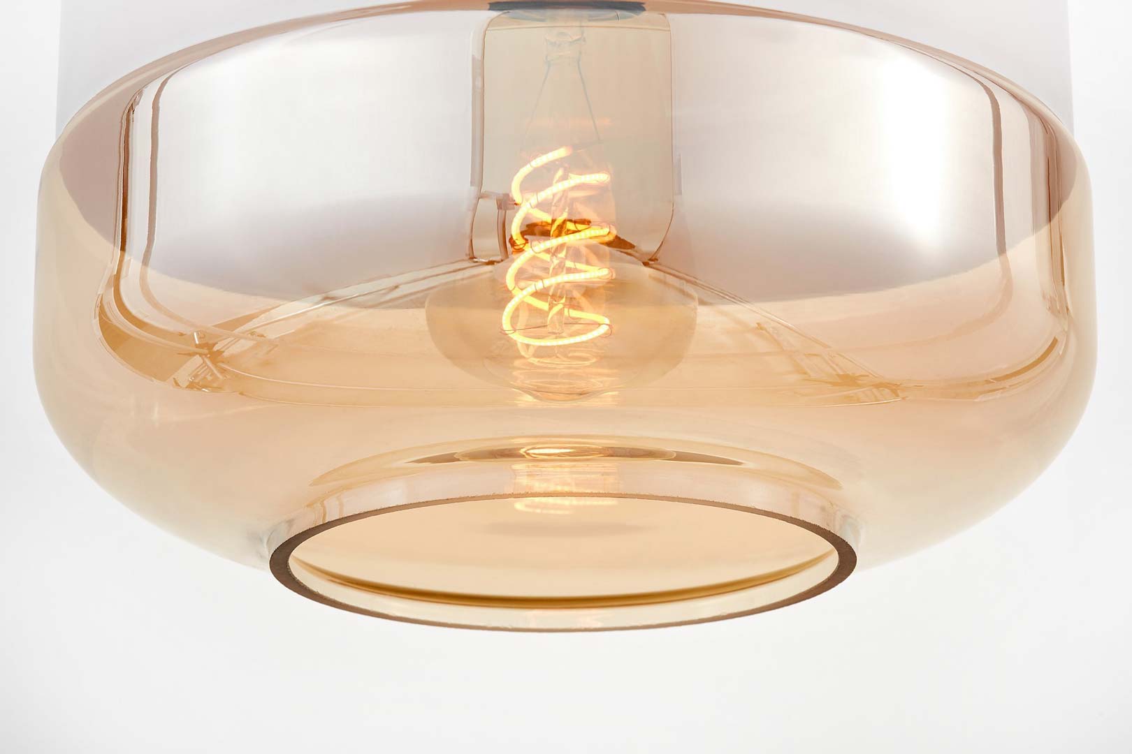 Designové stropní svítidlo BARLET v industriálním stylu. Průhledné skleněné stínidlo v jantarové barvě s kovovým doplňkem. Lampa je zavěšena na nastavitelném kabelu. Ideálně se hodí do obývacího pokoje, kuchyně a jídelny.