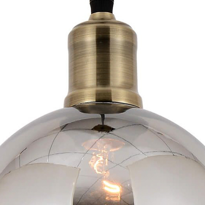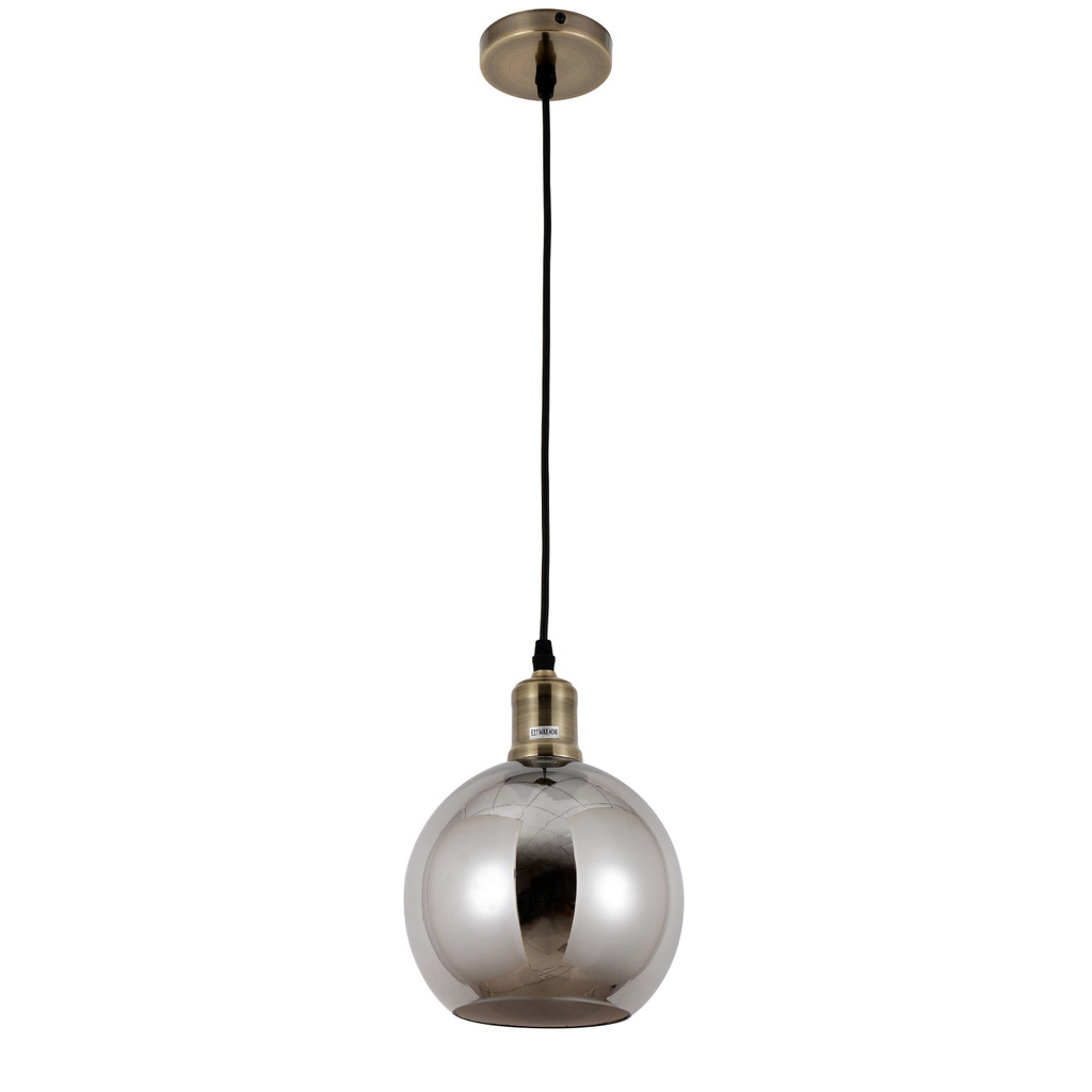 Závěsná lampa s kulovým stínidlem vyrobeným z módního kouřového skla. Hodí se jak pro retro, vintage, tak i pro loftové a industriální styly. Kouřové stínidlo bude mít v závislosti na žárovce šedou, stříbrnou barvu.