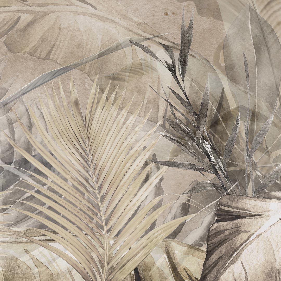 Tapeta jungle (džungle), banánové a palmové listy, béžová