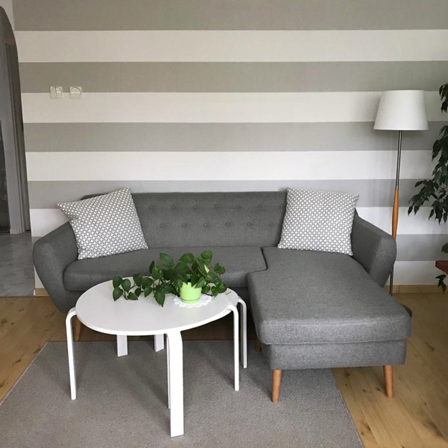 Světlá a módní tapeta na zeď s bílými a šedými pruhy rozjasní obývací pokoj nebo jiné místnosti vašeho domova. Je ideální pro loftové nebo moderní minimalistické interiéry.