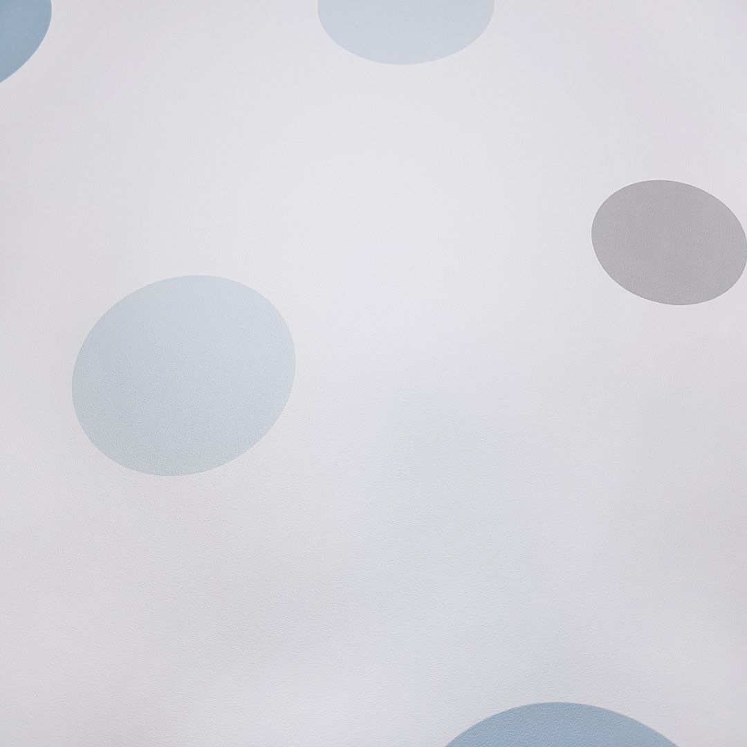 Světlá tapeta ve skandinávském stylu do kuchyně, obývacího nebo dětského pokoje. Jemný vzor zobrazuje vznášející se bubliny v šedé a špinavě modré barvě na bílém pozadí.