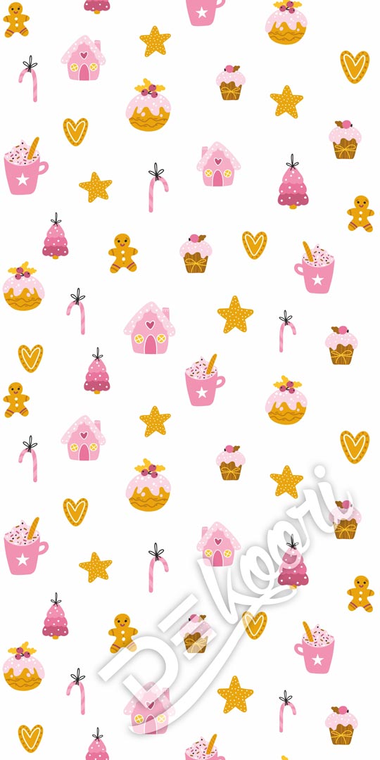 Slaďoučká tapeta s hnědými perníčky, muffinami s polevou, cukrovými tyčinkami a dalšími cukrářskými lahůdkami!