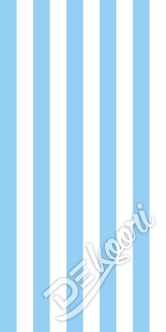 Tapeta na zeď se svislými bílo-modrými pruhy. Je univerzální, ale vynikne v dětském pokoji pro chlapce.