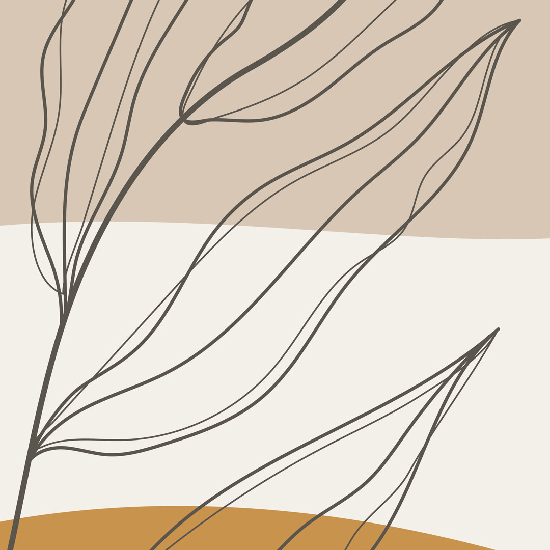 Abstraktní tapeta, větev v hnědé a tečky na krémovém pozadí, boho styl