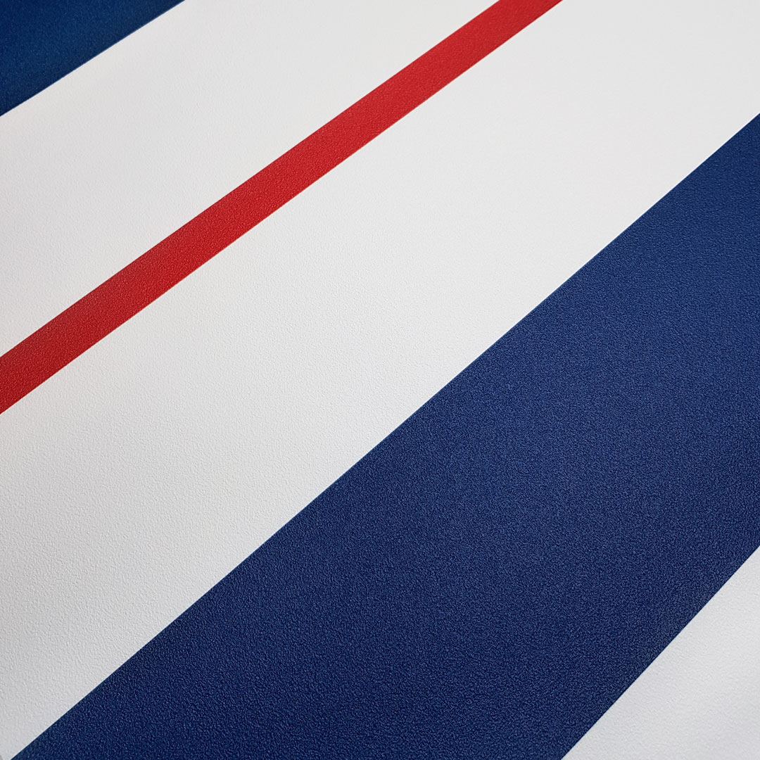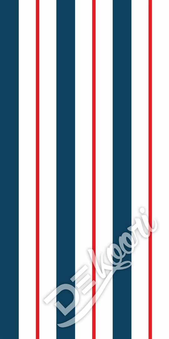 Tmavě modro-bílo-červená námořnická tapeta se svislými pruhy, dekorativní, námořní