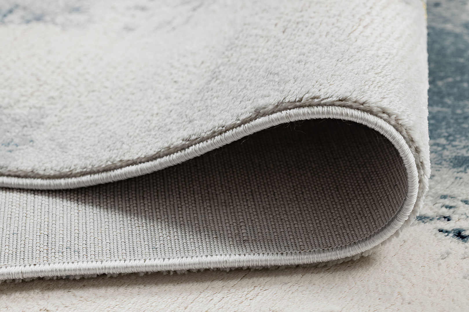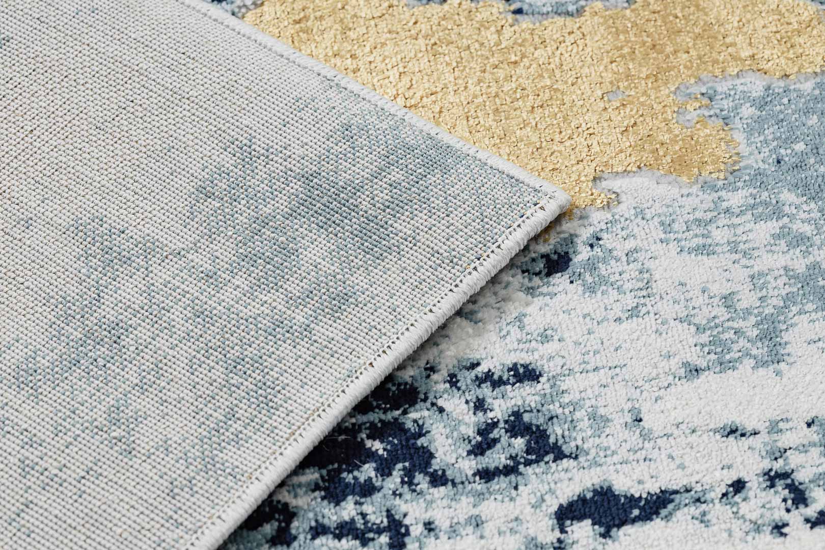 Tento umělecký abstraktní koberec v barevných modrých a zlatožlutých tazích štětcem na nádherně kontrastním světlém pozadí je kompozicí, která by se skvěle hodila i do světlých moderních interiérů. Tento netradiční vzor se však hodí i do interiérů zařízených v glamour nebo boho, vintage a retro stylu. Materiál zaručuje stálost barev, odolnost a snadné čištění!