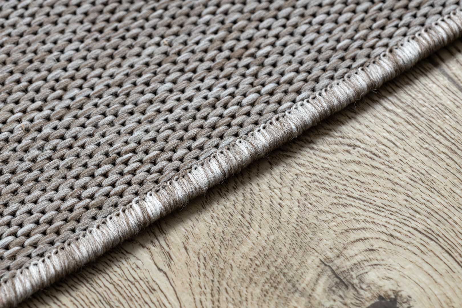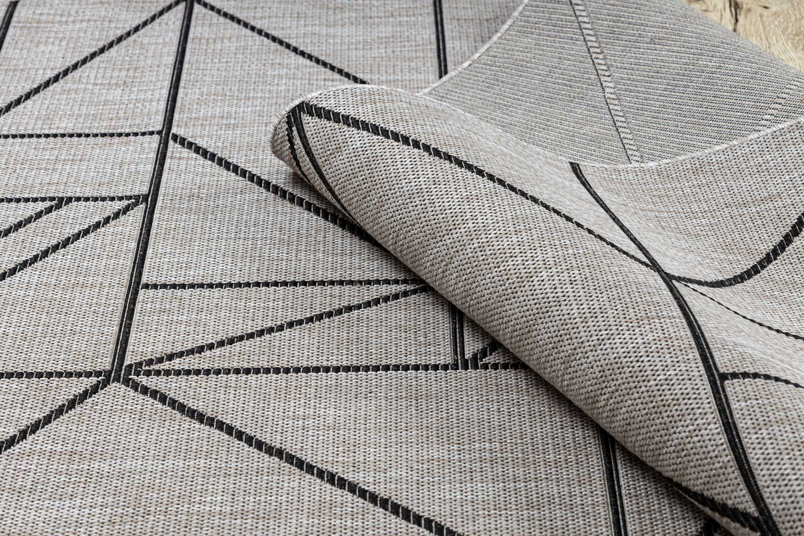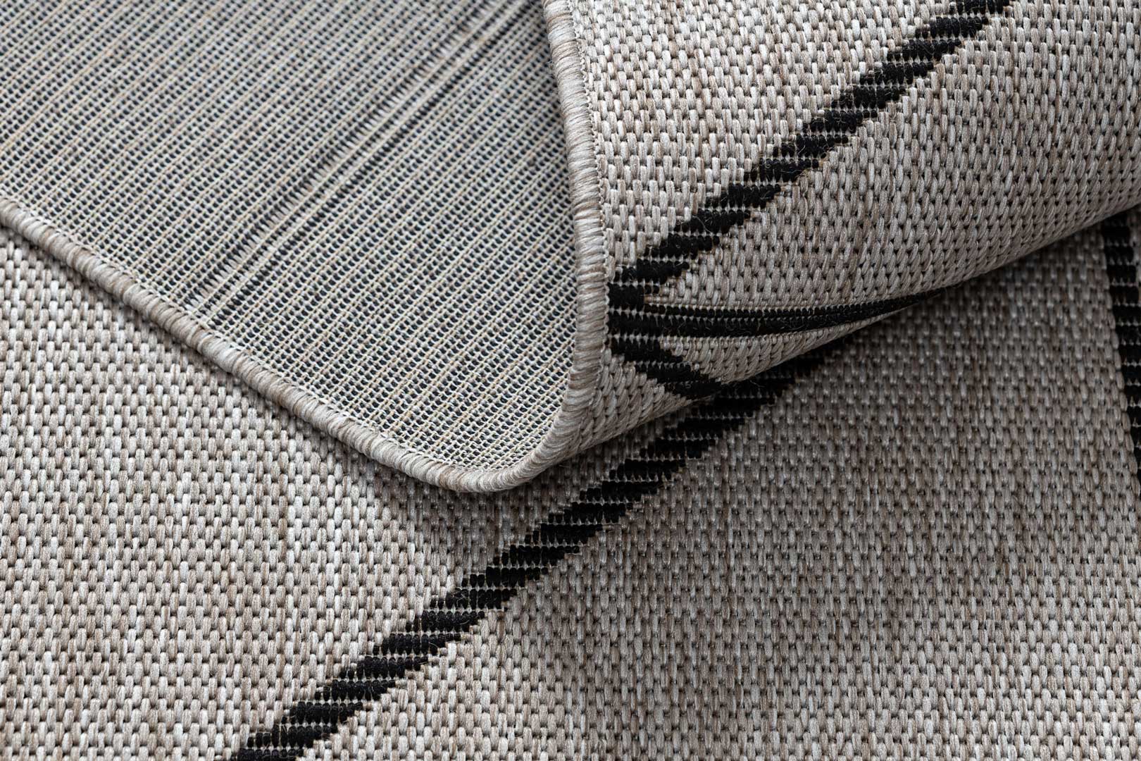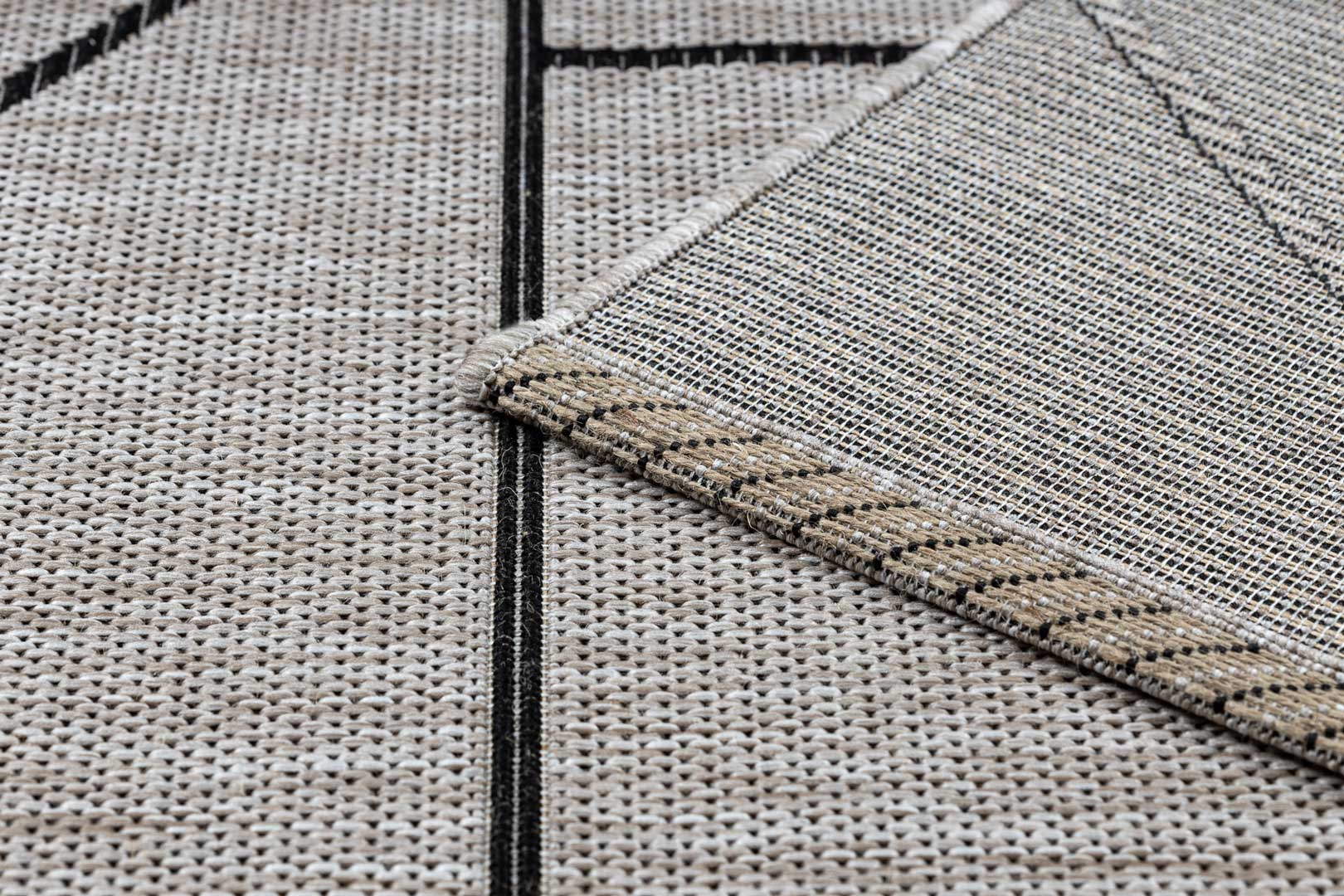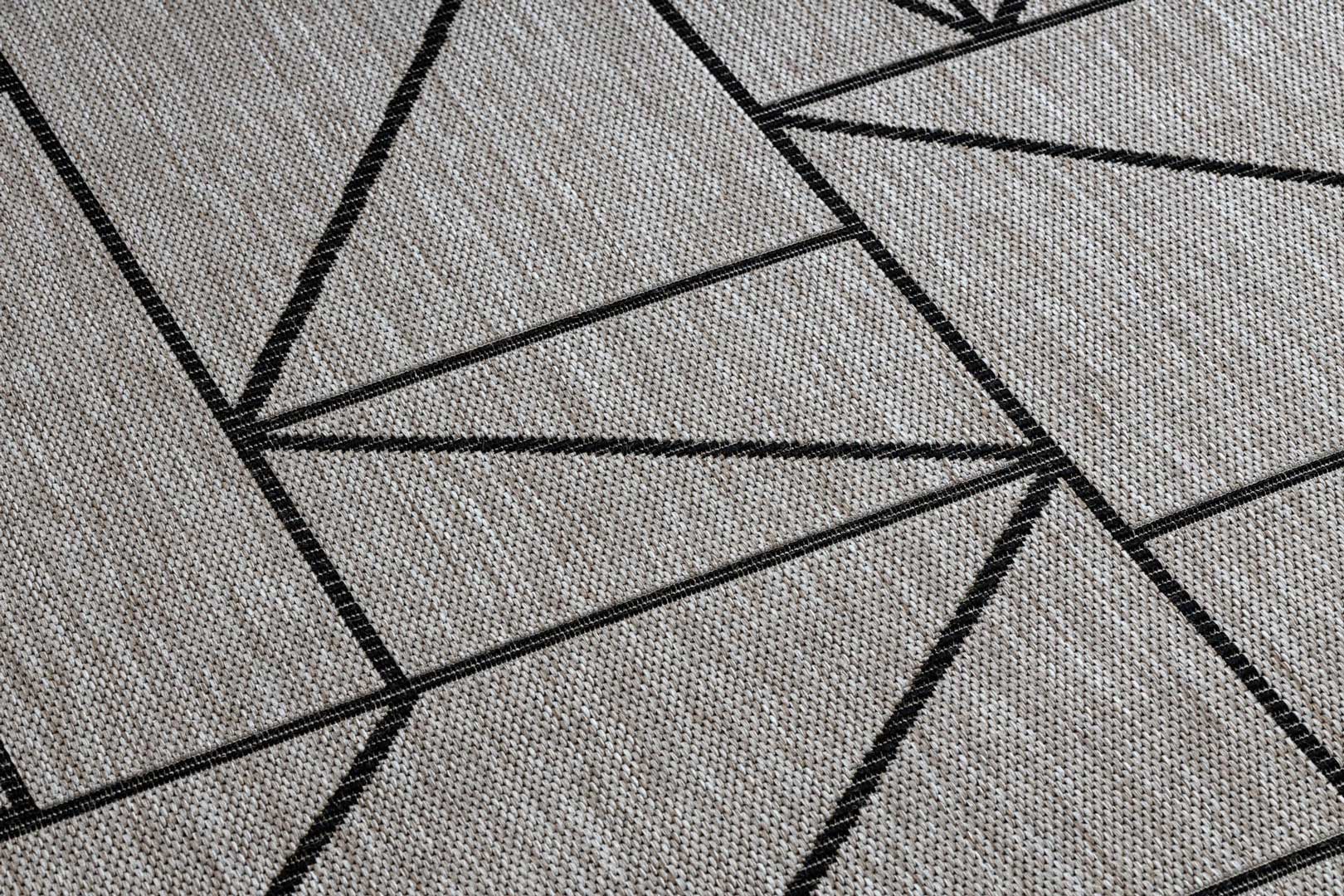Šedý a béžový šňůrkový koberec s černým geometrickým vzorem trojúhelníků, kosočtverců, boho styl, na terasu a do bytu - BOHANA