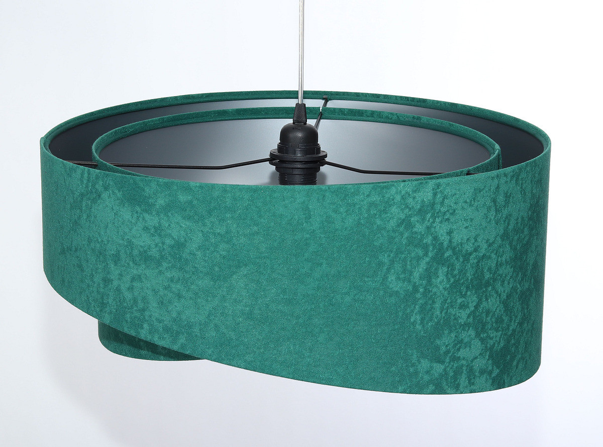 Zeleno-stříbrná závěsná lampa s velurovým asymetrickým stínidlem RUBIN