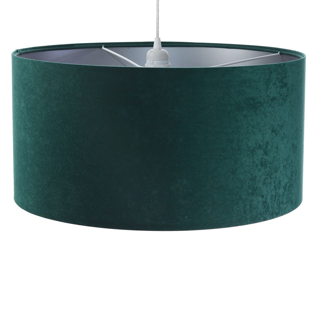 Zeleno-stříbrné závěsné svítidlo s velurovým stínidlem ve tvaru válce OLIMPIA